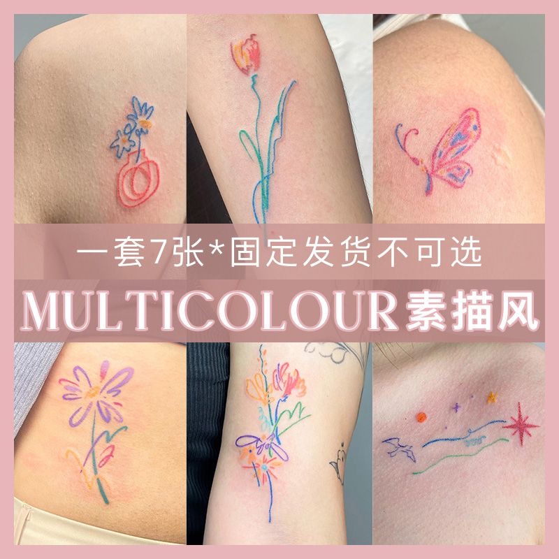 | nameOriginal | Cute abstract line colorful flower tattoo stickers waterproof long-lasting ins small fresh arm wrist body stickers |