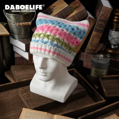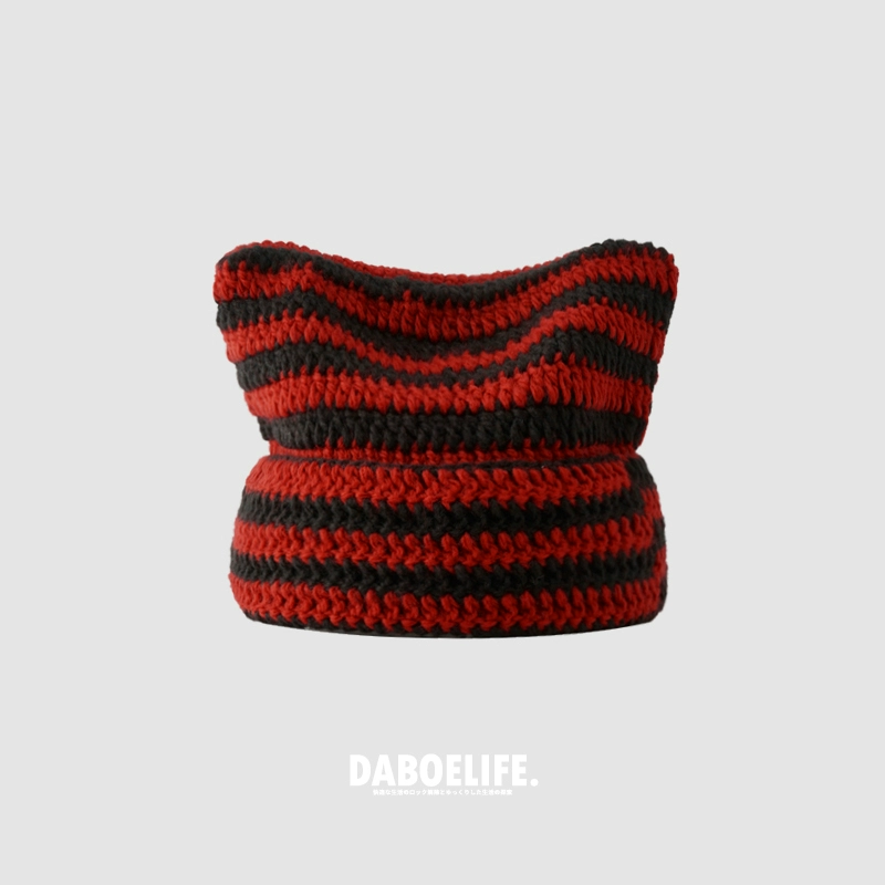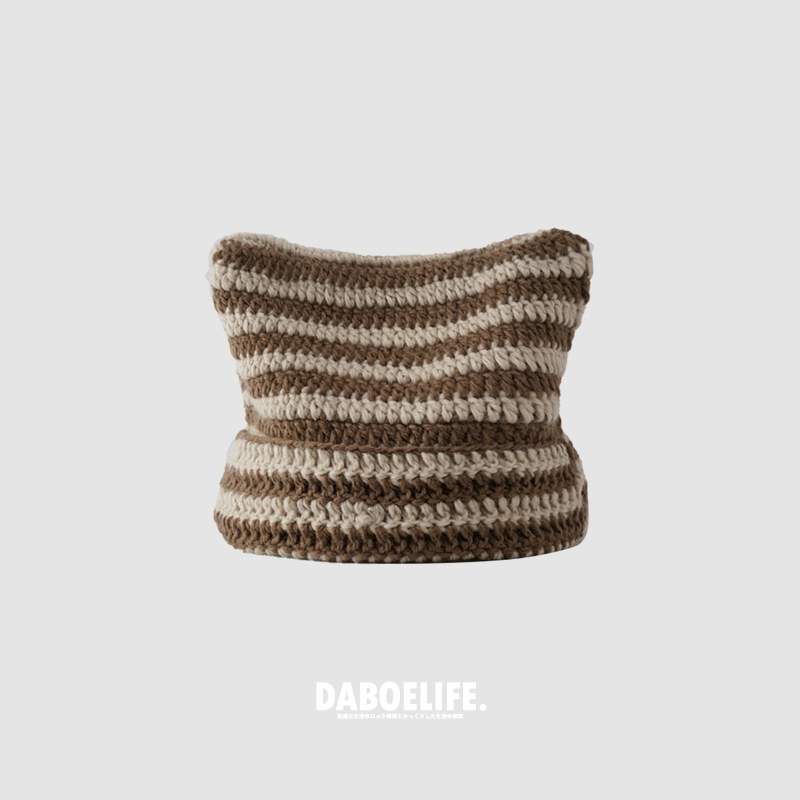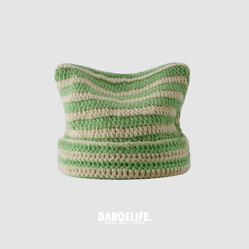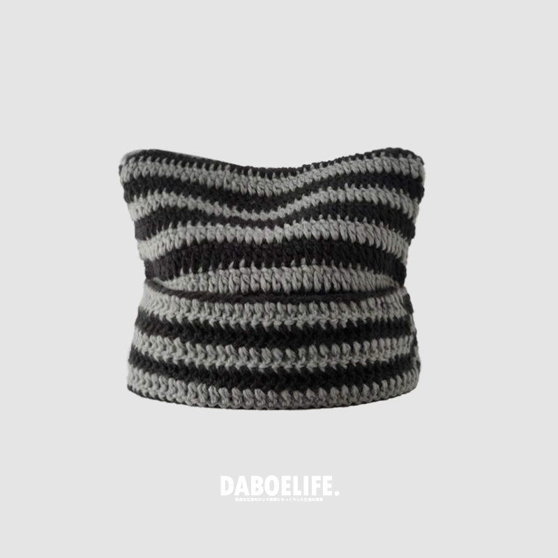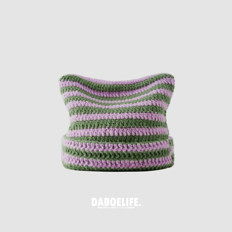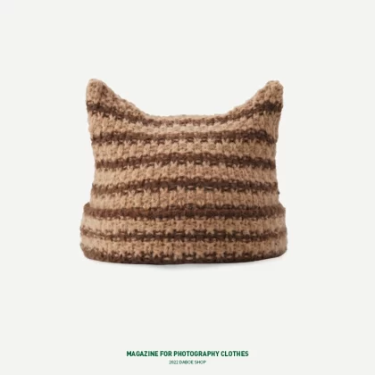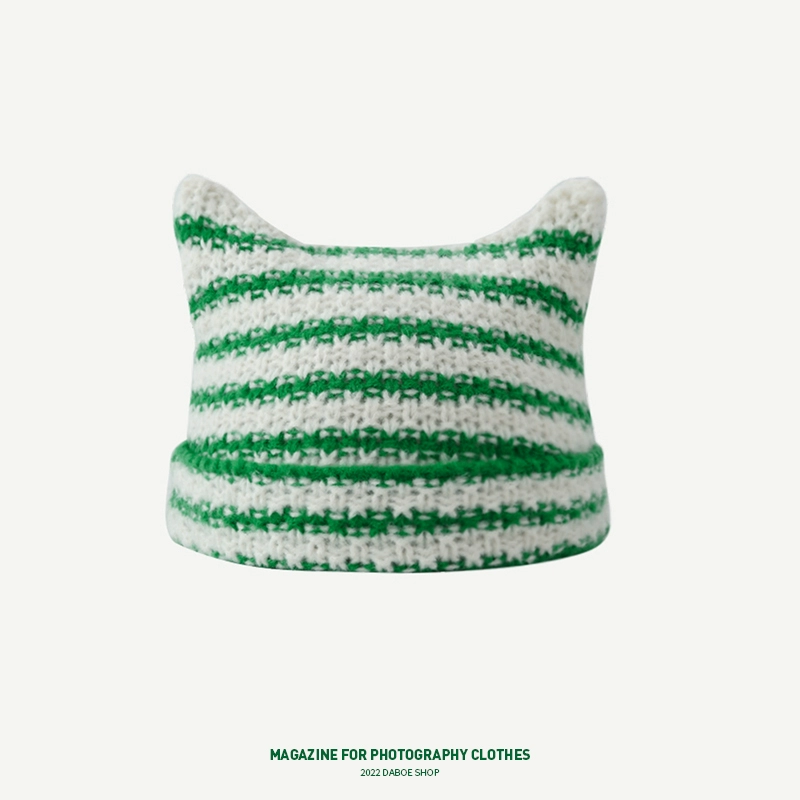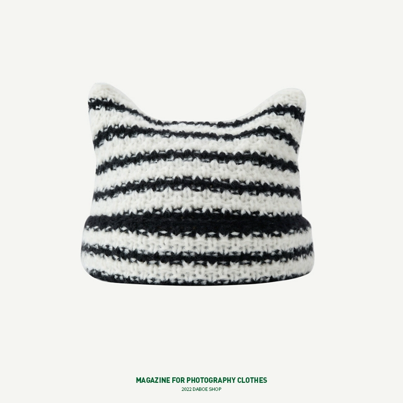 | nameOriginal | Cute autumn and winter cat ears ins striped beanie |