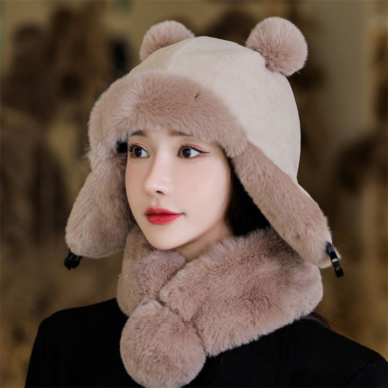 | nameOriginal | Cute bear hat scarf for Women New 2022 Internet celebrity winter Versatile scarf winter warm plush hat |