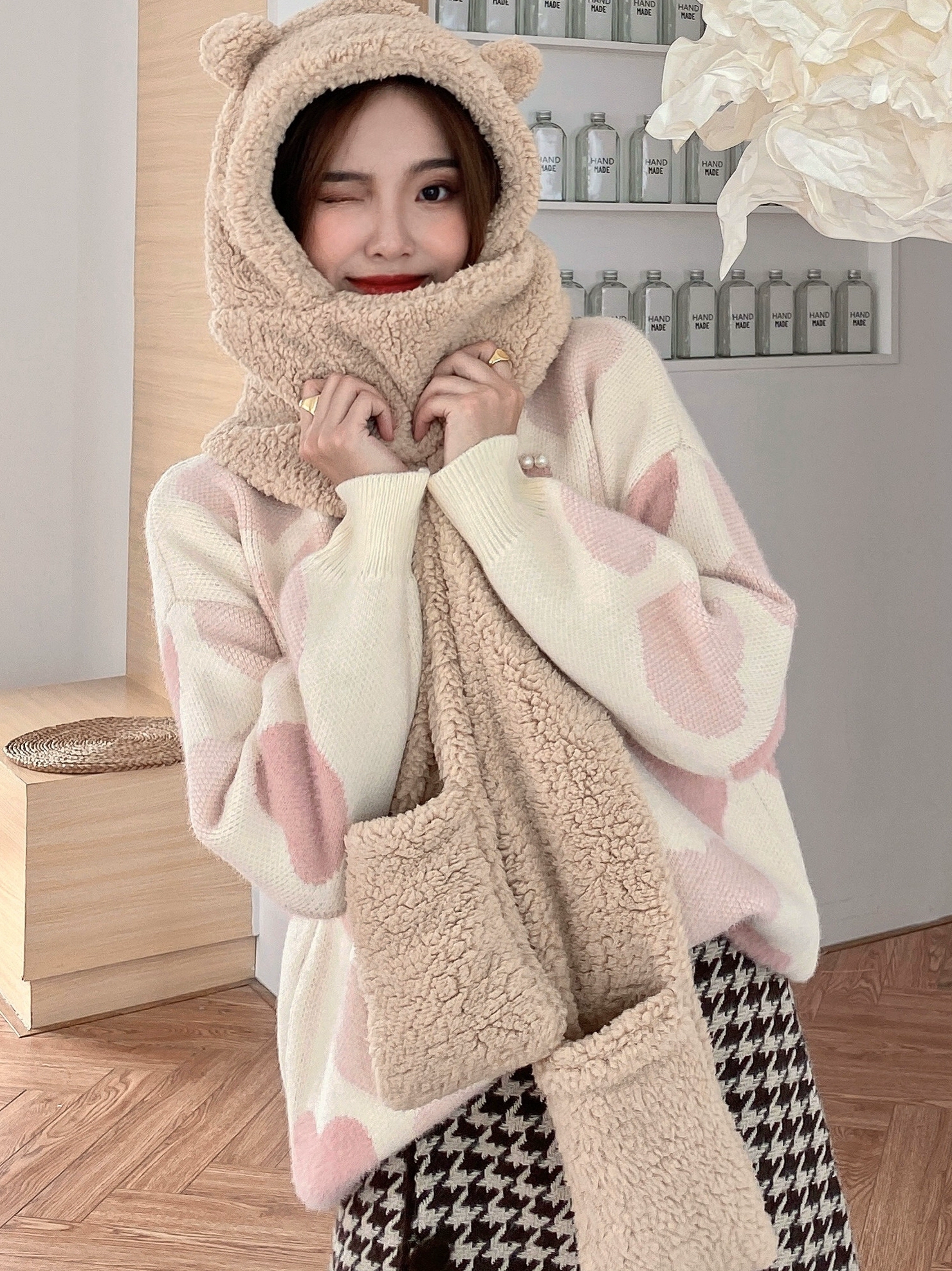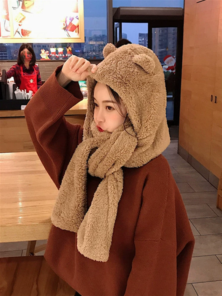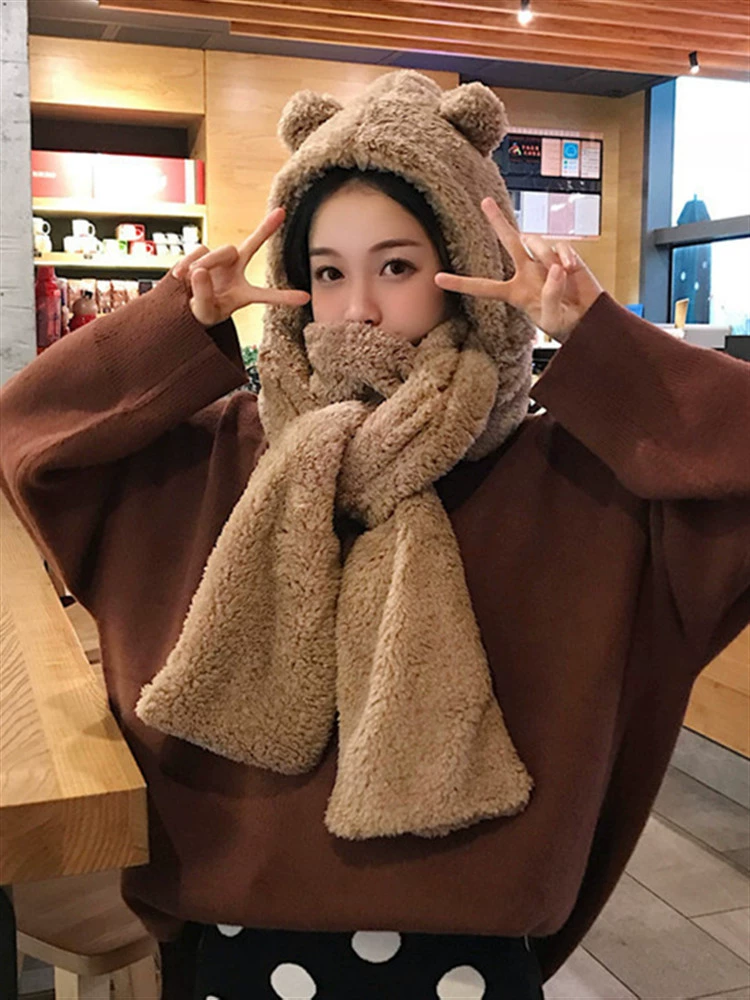 | nameOriginal | Cute bear hat scarf one-piece thickened student knitted warm one-piece hat scarf women's winter Korean version multi-purpose |
