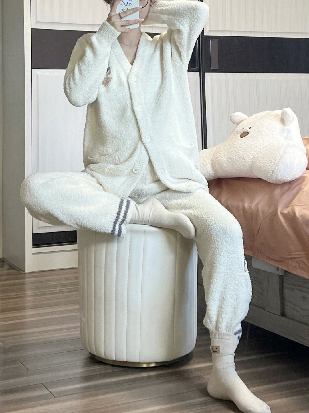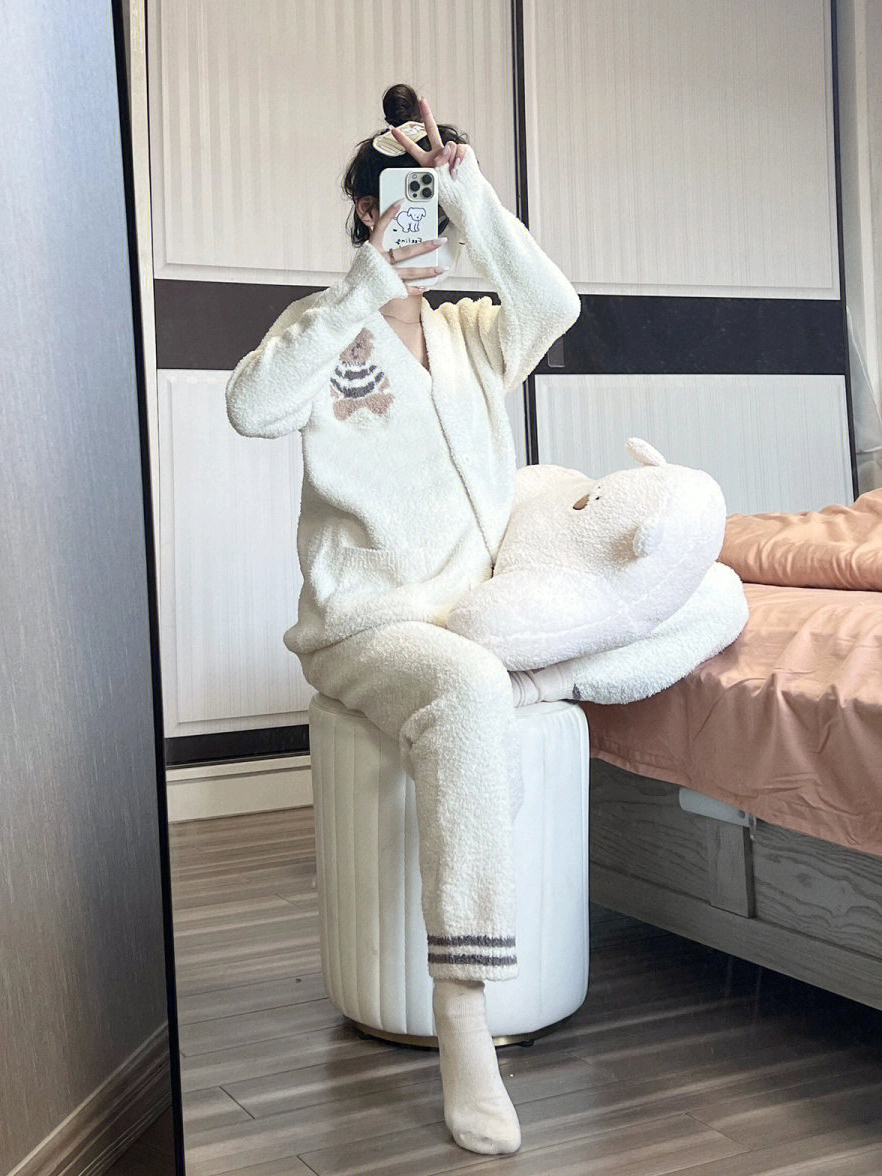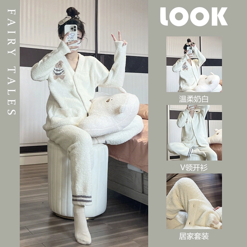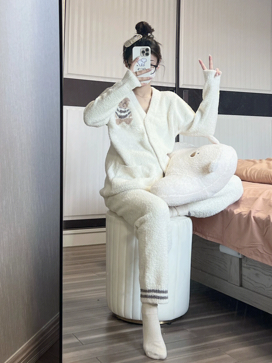 | nameOriginal | Cute bear plush knitted long-sleeved pajamas for women winter new style plus velvet and thickened warm home suit that can be worn outside |
