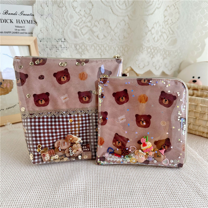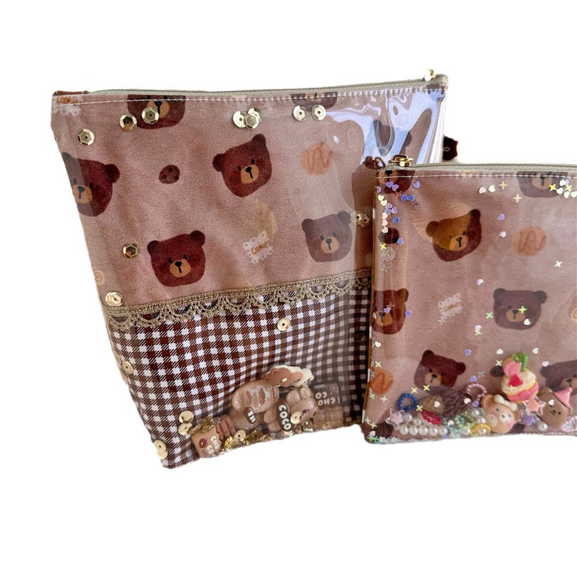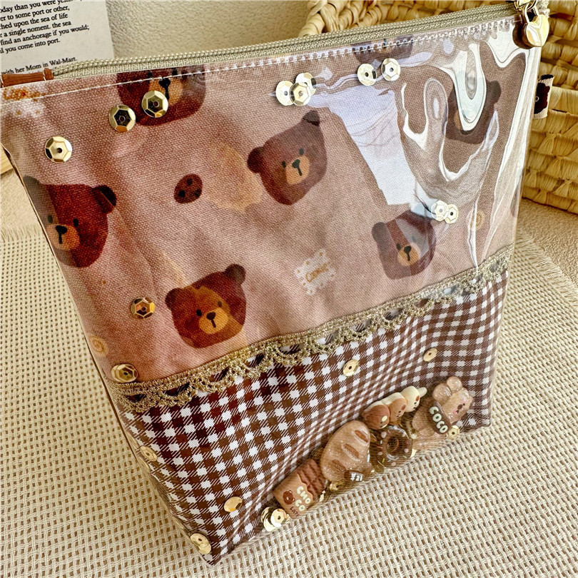 | nameOriginal | Cute bear transparent quicksand cosmetic bag mouth red envelope L zipper bag original design niche quicksand bag girl bag |