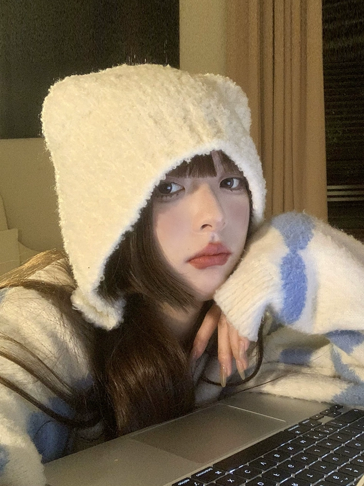 | nameOriginal | Cute bear woolen hat for women in autumn and winter, large head circumference, warm ear protection hat, versatile and face-friendly, small Baotou knitted hat, trendy |