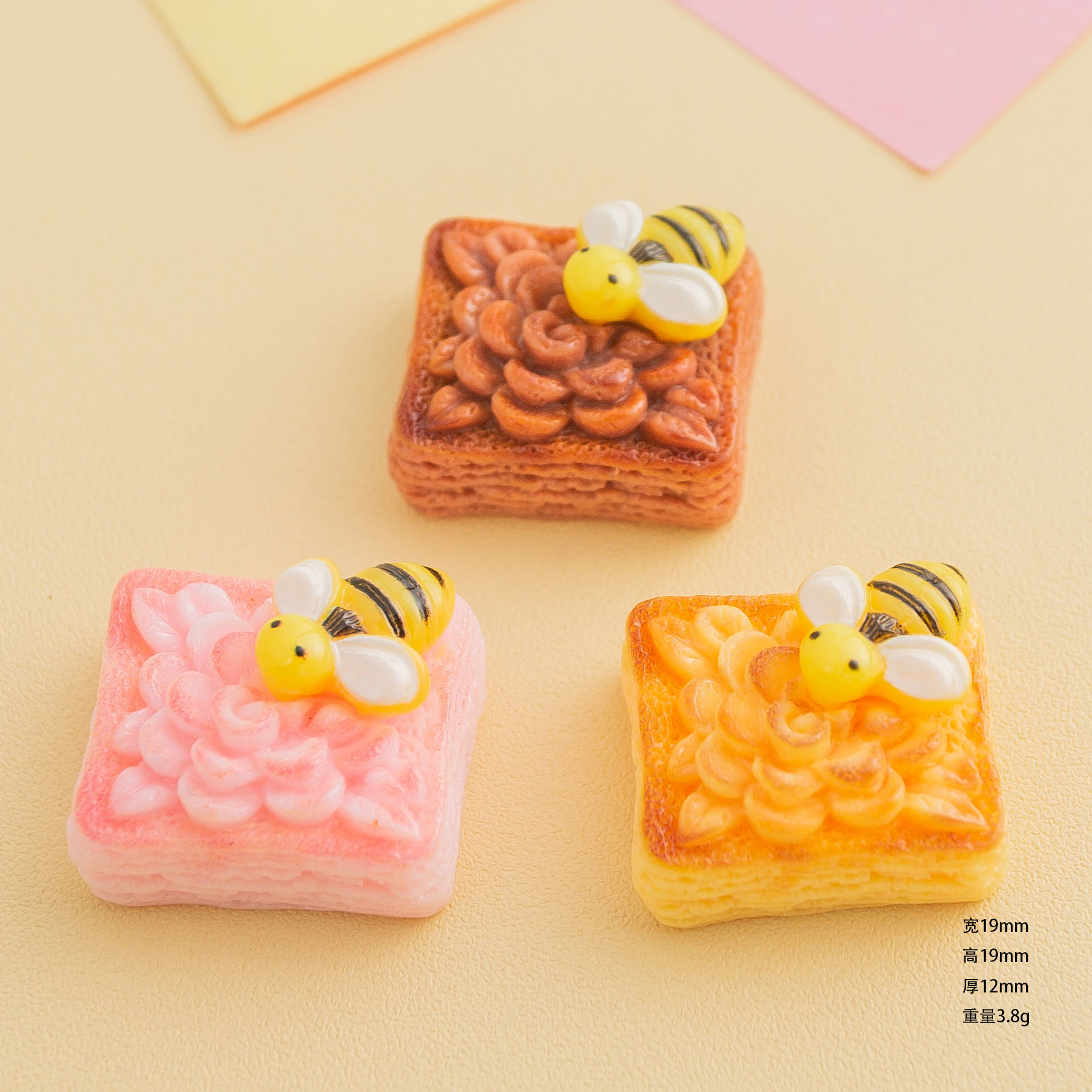 | nameOriginal | Cute Bee Flower Biscuit Food Ornaments Hairpin Cream Glue Mobile Phone Case Shoe Buckle Head Rope DIY Resin Accessories |