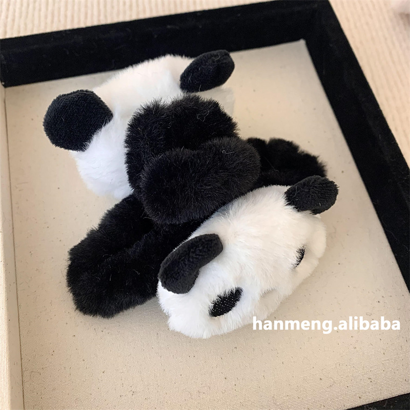 | nameOriginal | Cute black and white panda hair clip autumn and winter Plush Hair ring female back head hairpin cartoon clip updo shark clip |