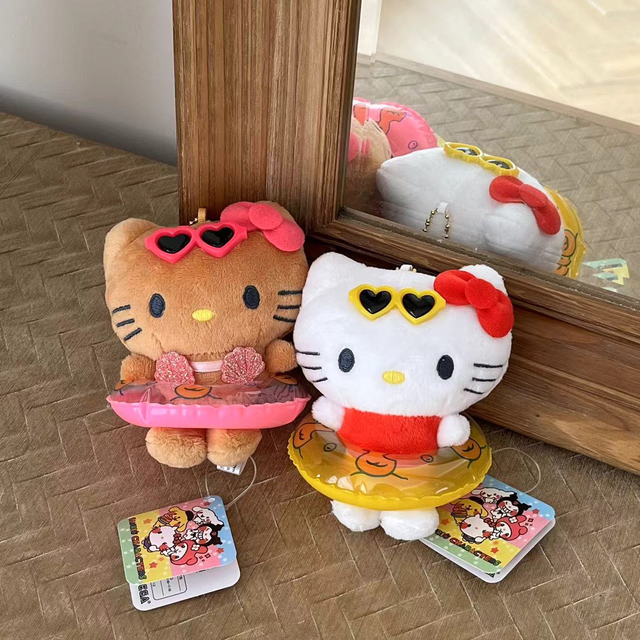 | nameOriginal | Cute black leather kt cat swimming ring bag pendant plush doll Hawaiian Kitty pendant gift |