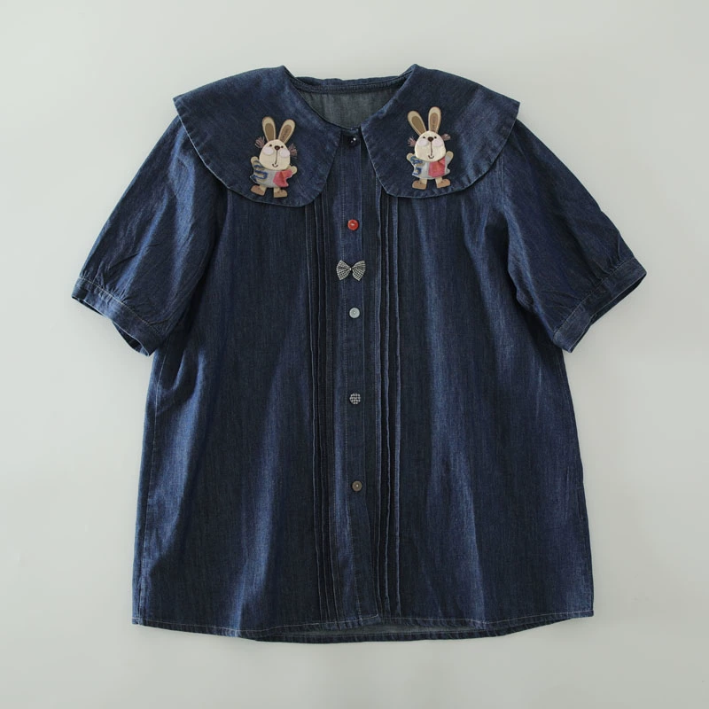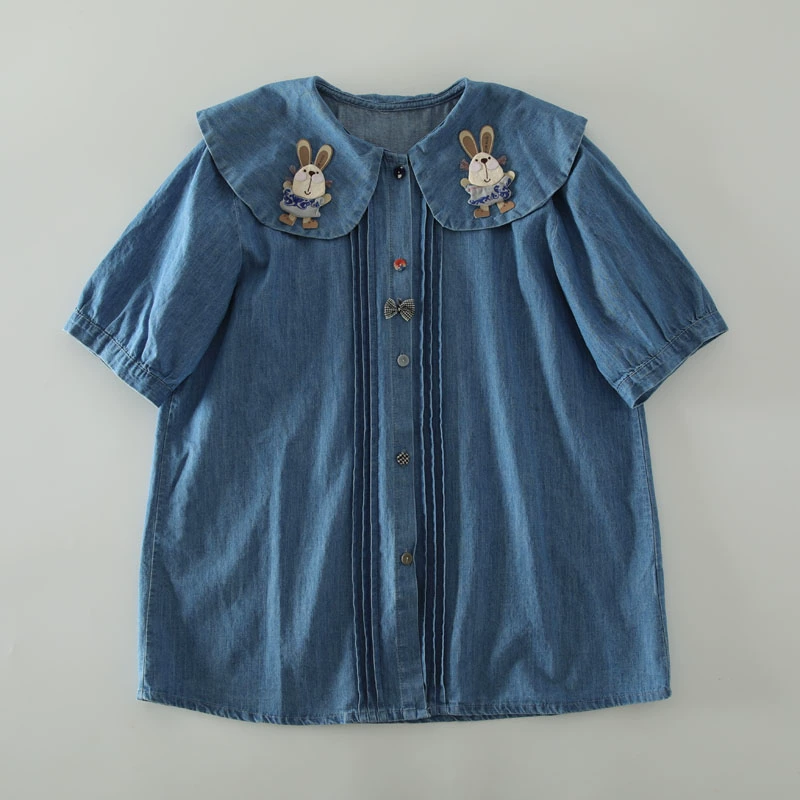 | nameOriginal | Cute bunny denim chest pleated short-sleeved shirt |