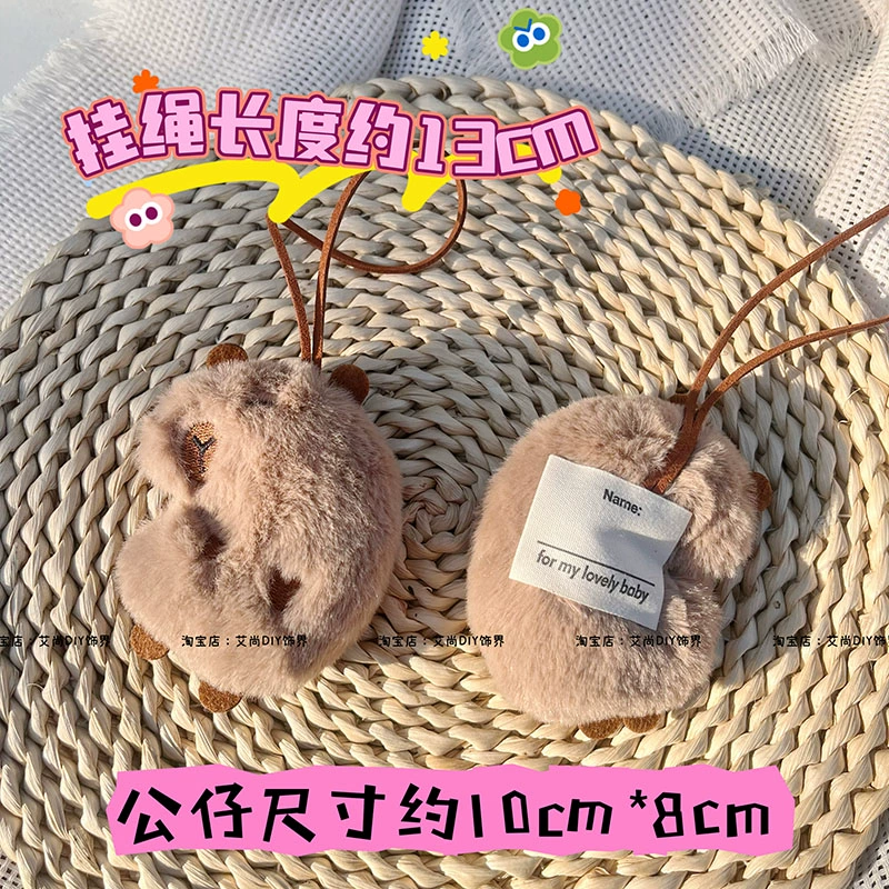 Cute capybara name tag plush school bag pendant
