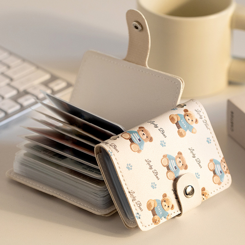 Cute cartoon card holder women's buckle large capacity multi-card position ultra-thin small men's card holder driving license card holder