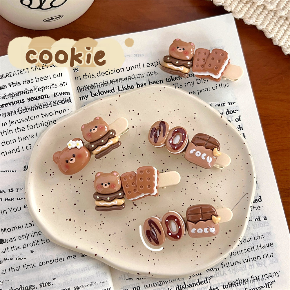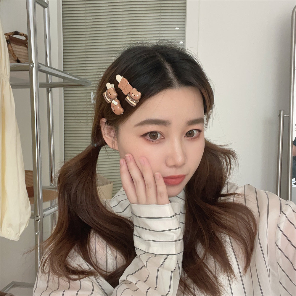Cute cartoon dessert Bear biscuit hairpin girl duckbill clip student broken hairpin bangs side hairpin hair accessories