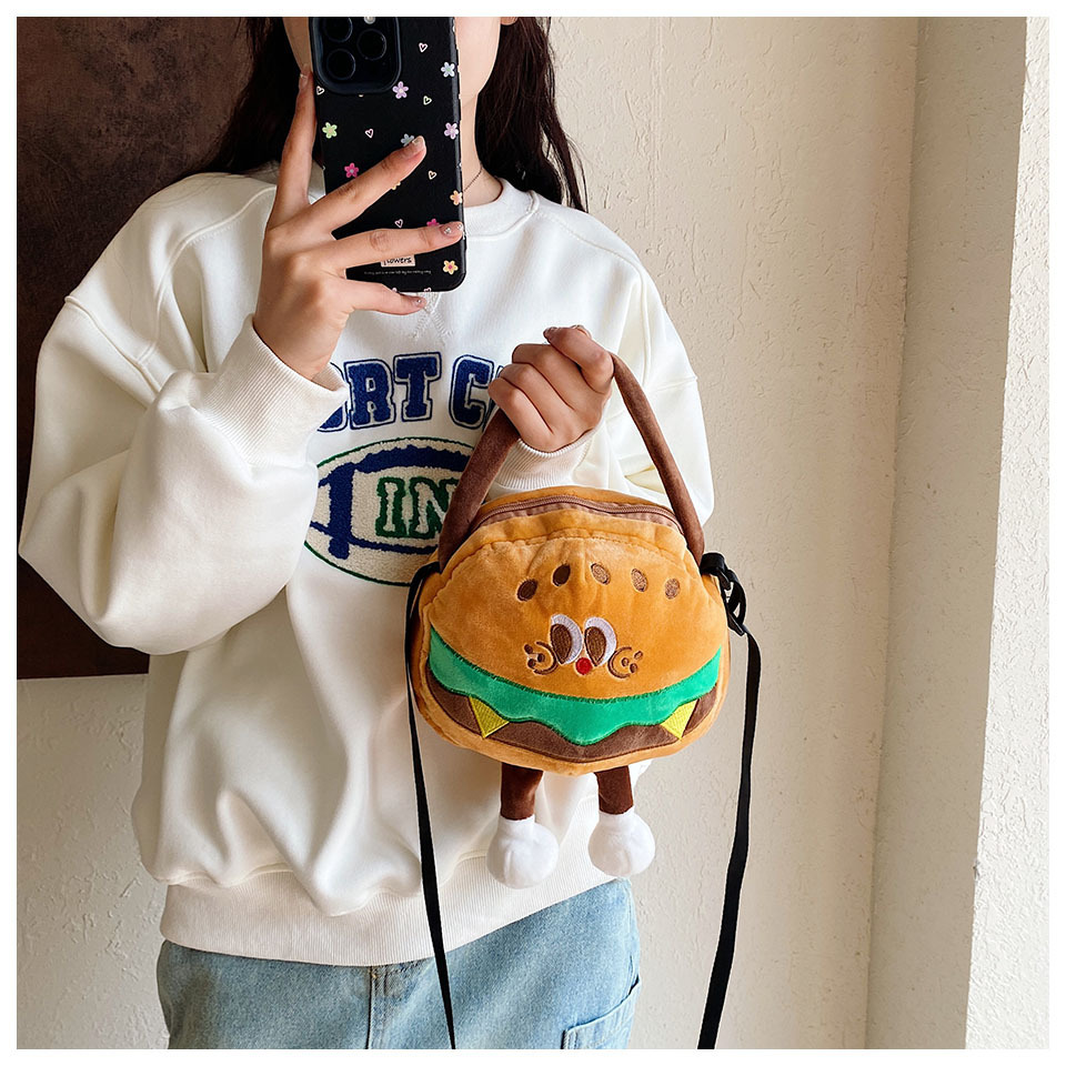 Cute Cartoon Fun Ins French Fries Hamburger Bag Girl's All-match Small Satchel Creative Portable Crossbody Coin Purse