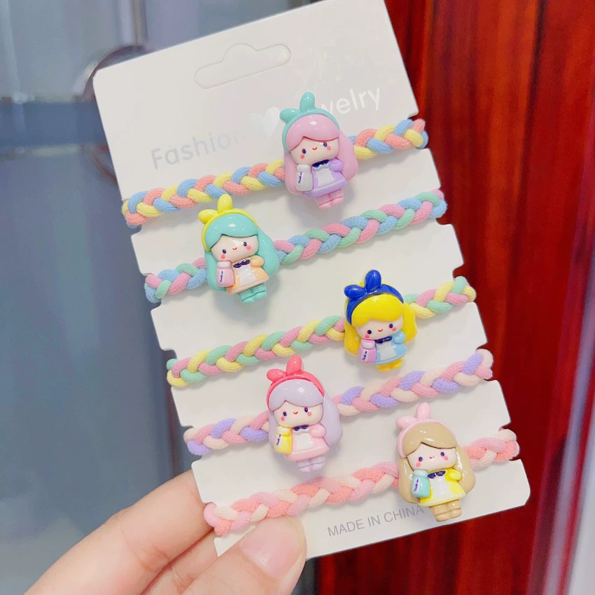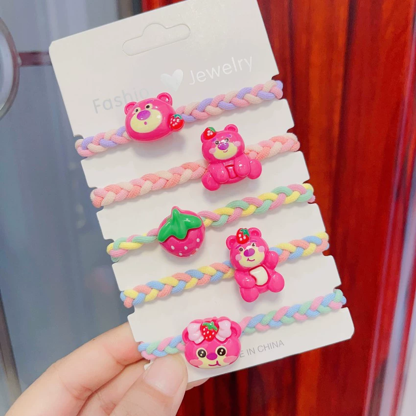 Cute cartoon head rope rubber band women tie hair rope high elastic durable high ponytail hair ring leather case children’s headgear