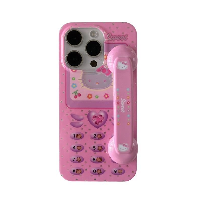 Cute cartoon kt cat phone handle suitable for Apple 15 mobile phone case 14ProMax stand iPhone15 new iPhone13 creative 15ProMax silicone case 12 soft shell soft girl girl