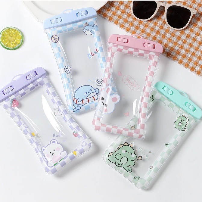 Cute cartoon mobile phone waterproof bag airbag floating touch screen protective cover drifting swimming mobile phone waterproof bag