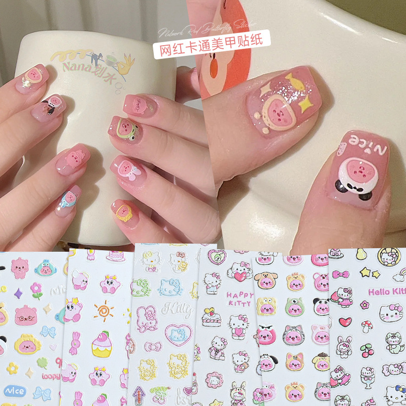 | nameOriginal | Cute cartoon nail stickers relief three-dimensional Little Beaver Ruby Hello Kitty star cartoon nail stickers wholesale |