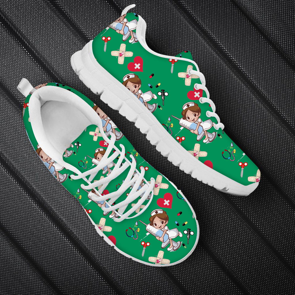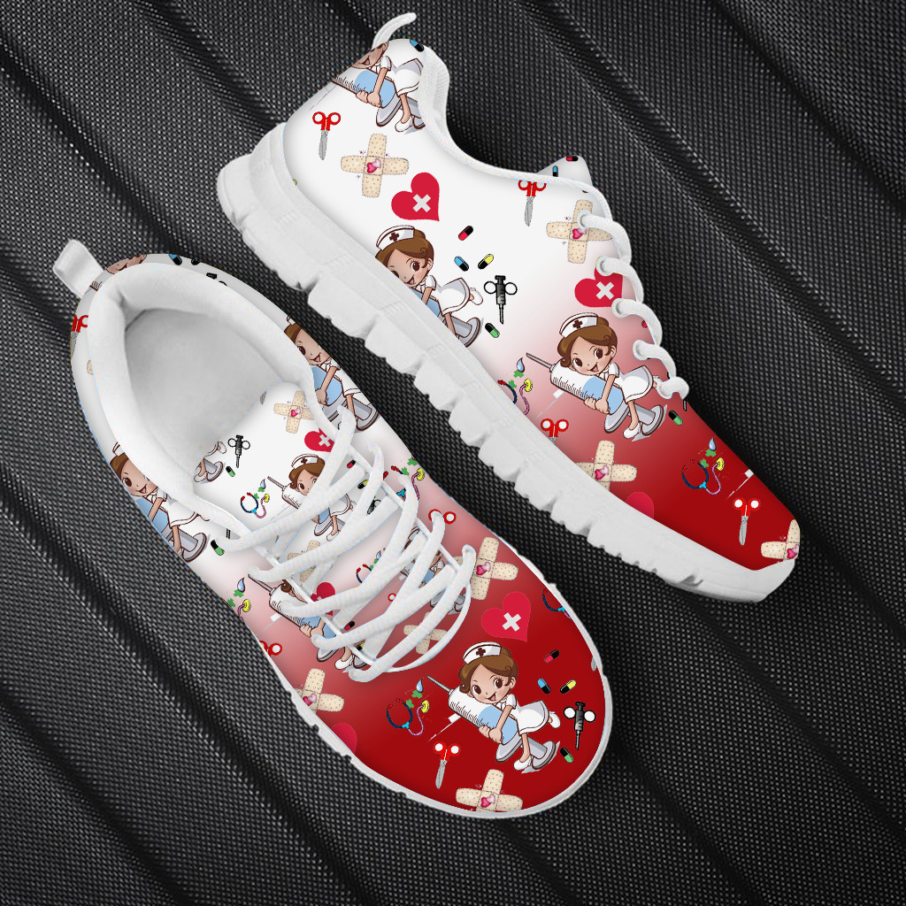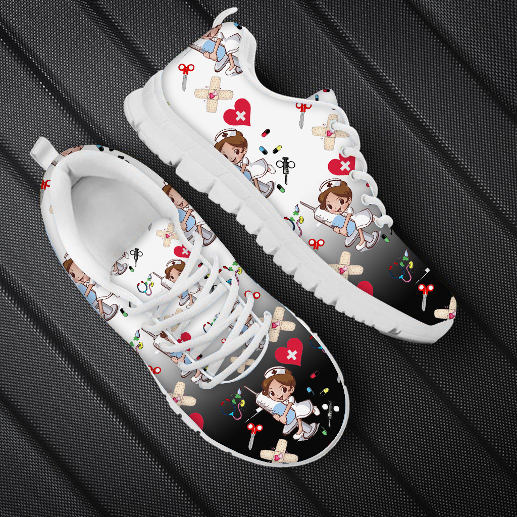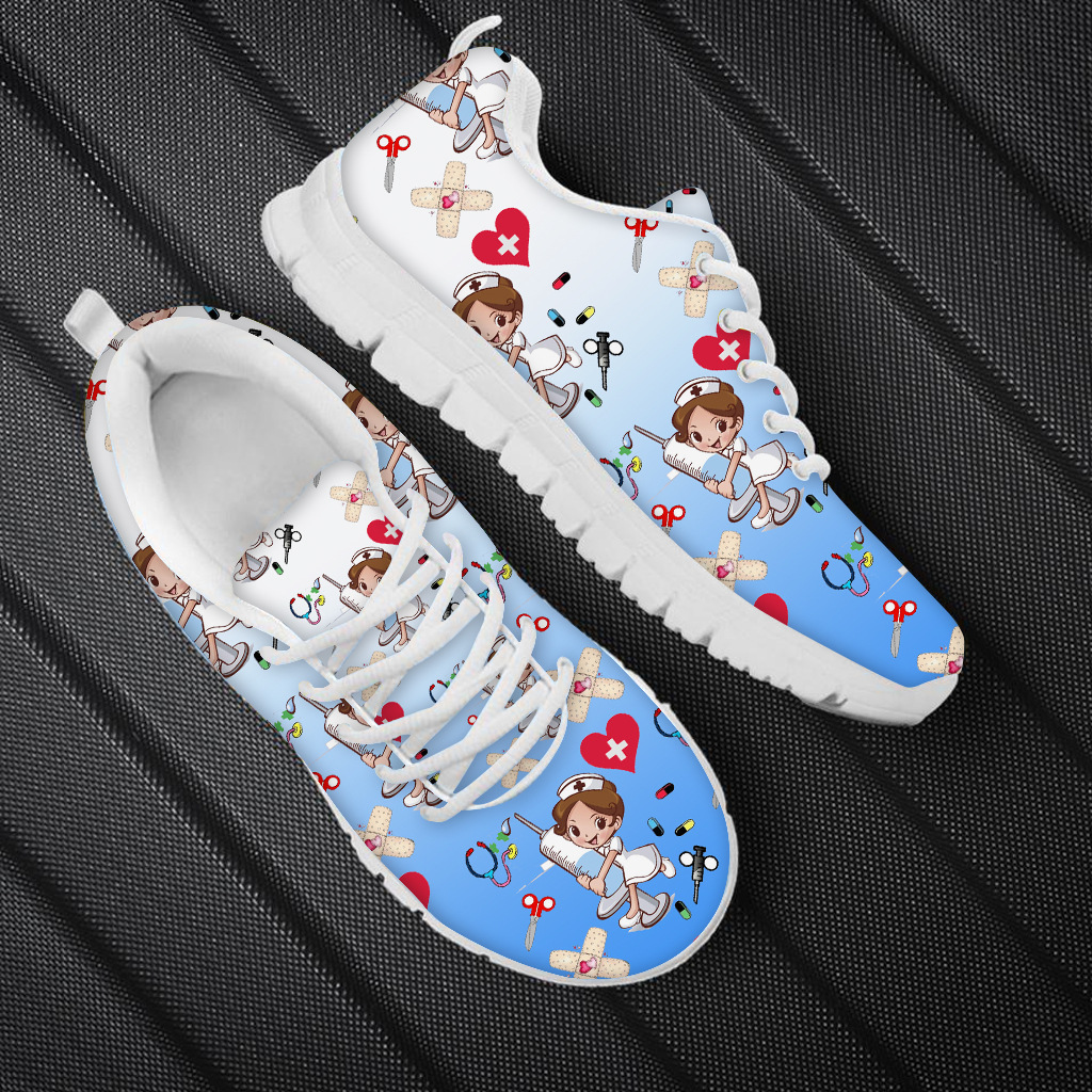 Cute Cartoon nurse Print Sports Casual Lightweight Strap Shoes Men's and Women's nurse Mesh Shoes Running Shoes