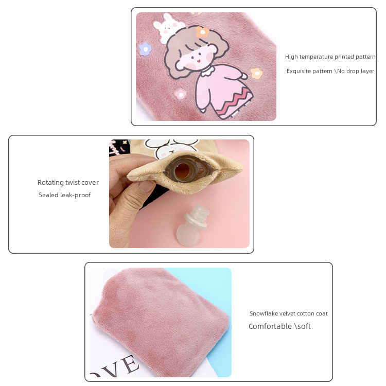 | nameOriginal | Cute cartoon plush hot water bag pvc material student warm water bag girl belly warm hand treasure water injection hot water bag |
