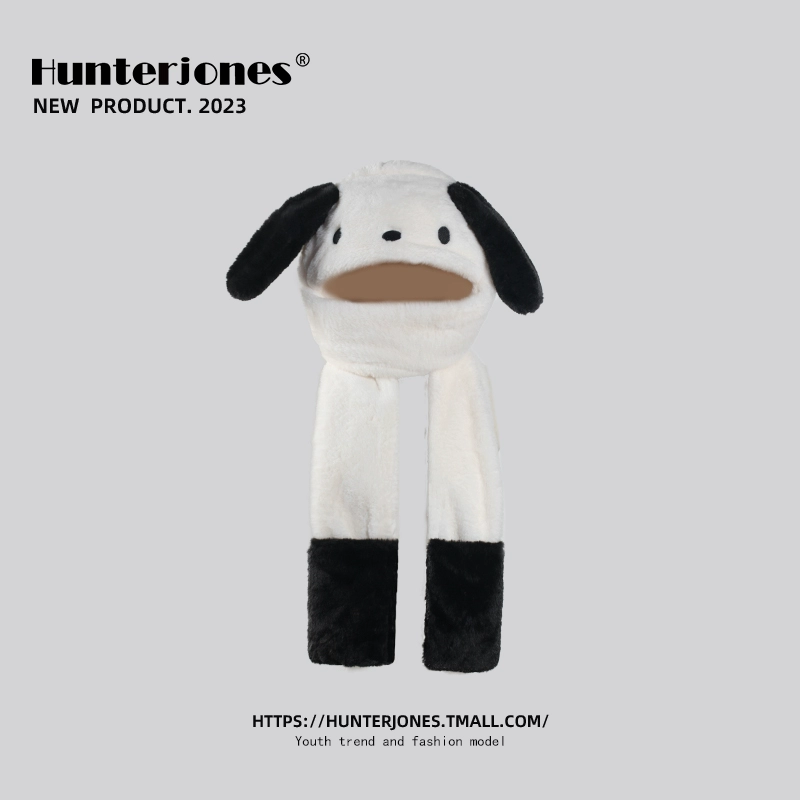 | nameOriginal | Cute cartoon puppy plush hat, scarf, gloves, one-piece female winter warm Lei Feng hat that makes the ears move when you pinch them |