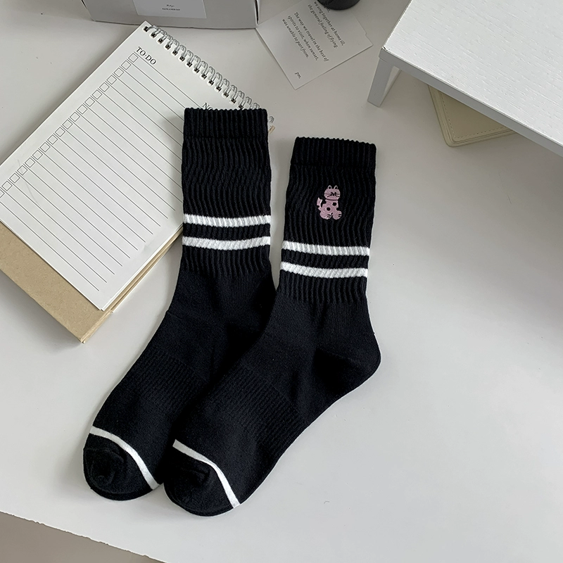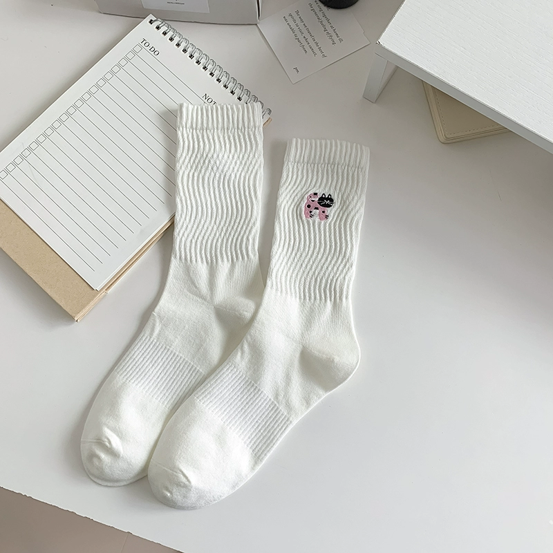| nameOriginal | Cute cat embroidered black and white stockings for men and women, same style cartoon socks, women's cotton simple mid-calf socks, street fashion socks |