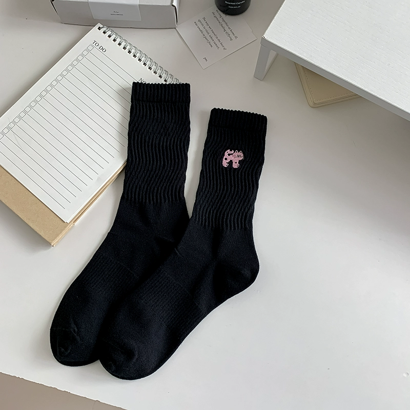 | nameOriginal | Cute cat embroidered black and white stockings for men and women, same style cartoon socks, women's cotton simple mid-calf socks, street fashion socks |