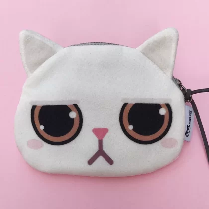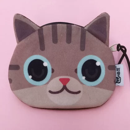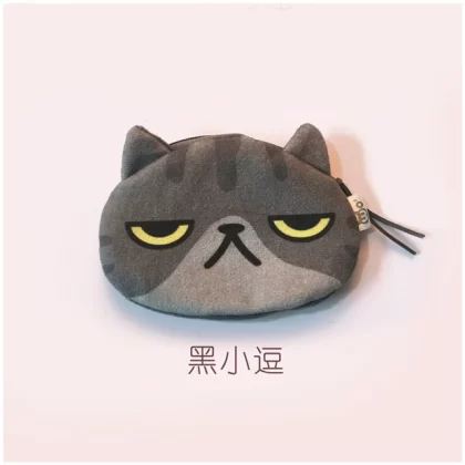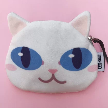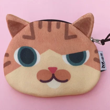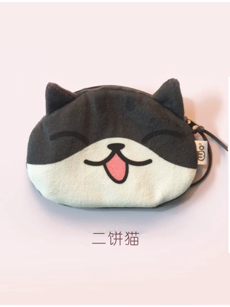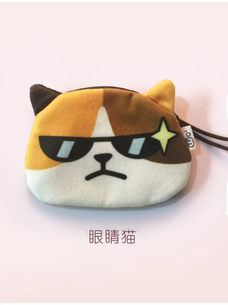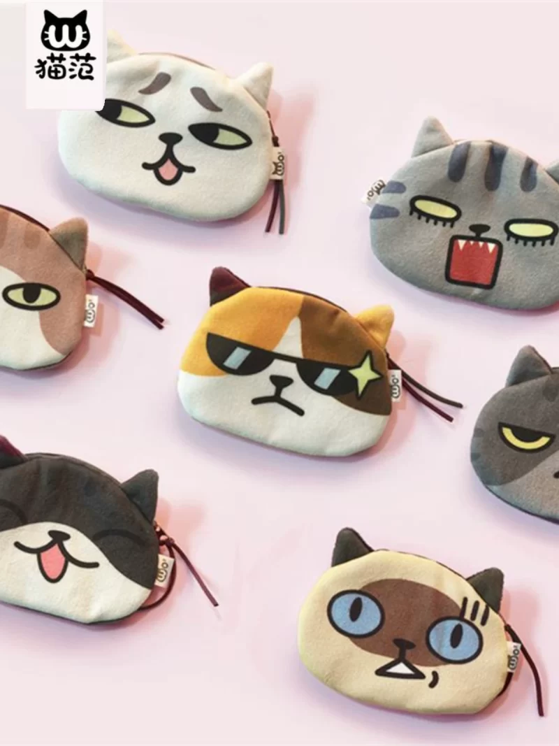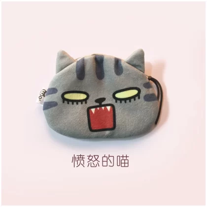 Cute cat face coin purse expression bag coin bag creative cartoon key bag printed plush card bag headphone bag cute