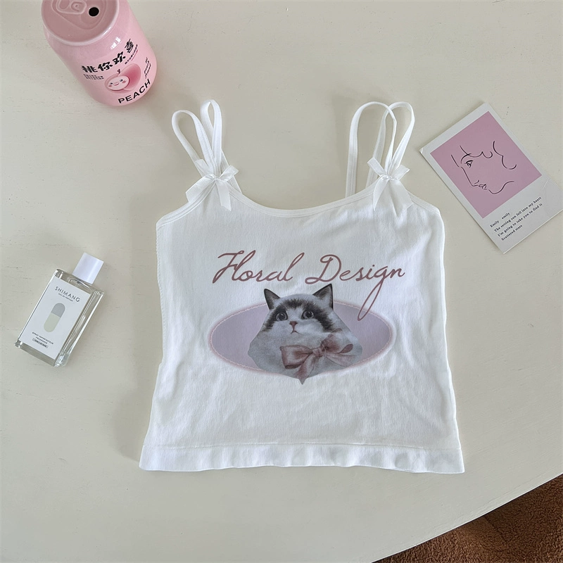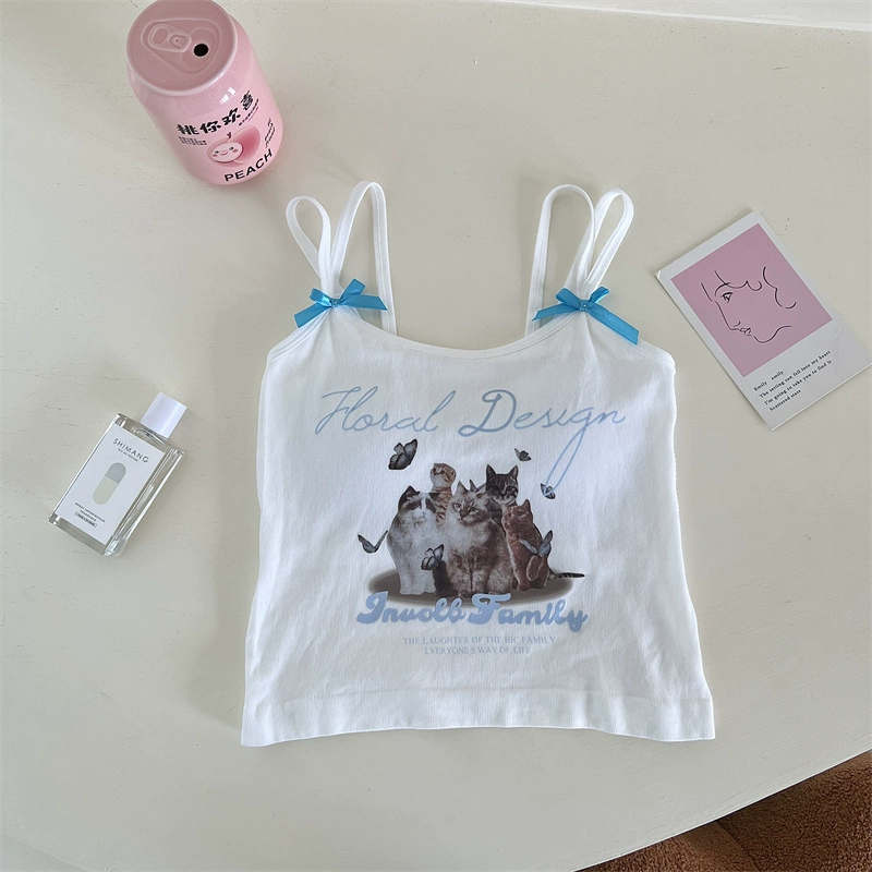 | nameOriginal | Cute cat hottie bow little camisole women's inner wear summer pure desire slim fit navel-baring short top trendy |