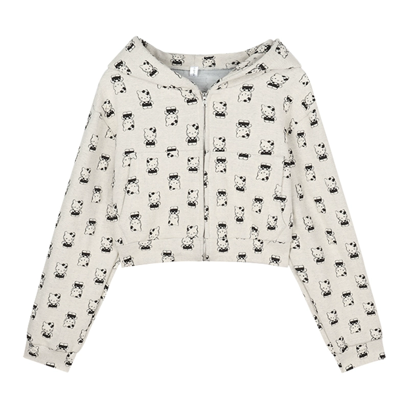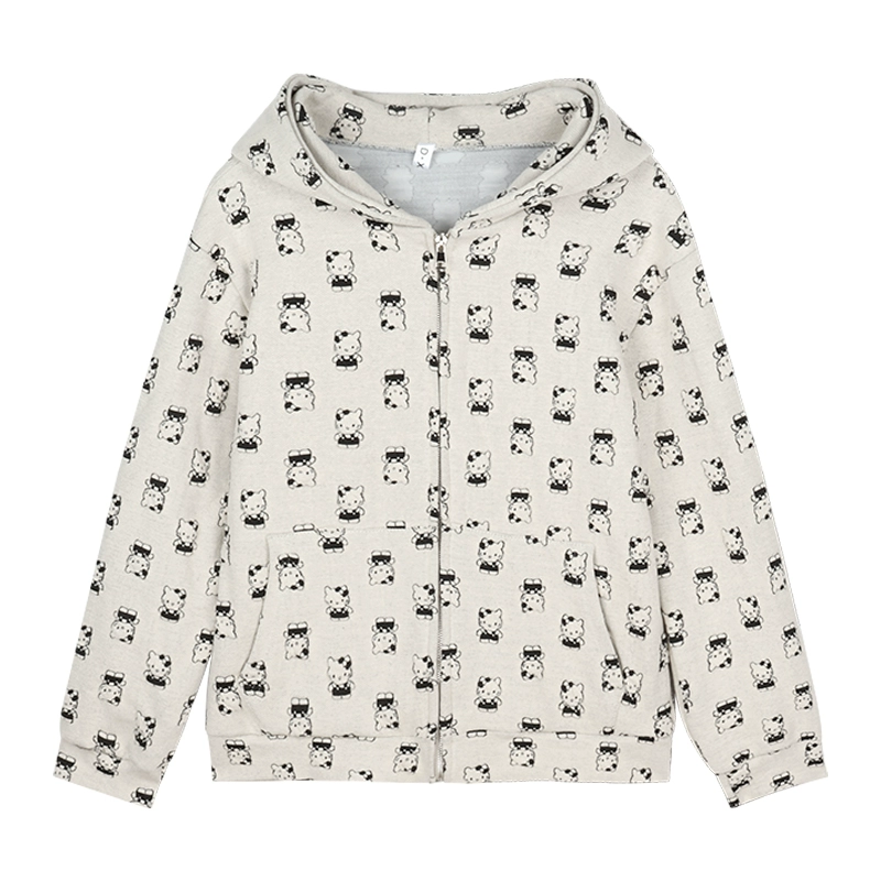 Cute cat loose zipper hooded printed sweatshirt