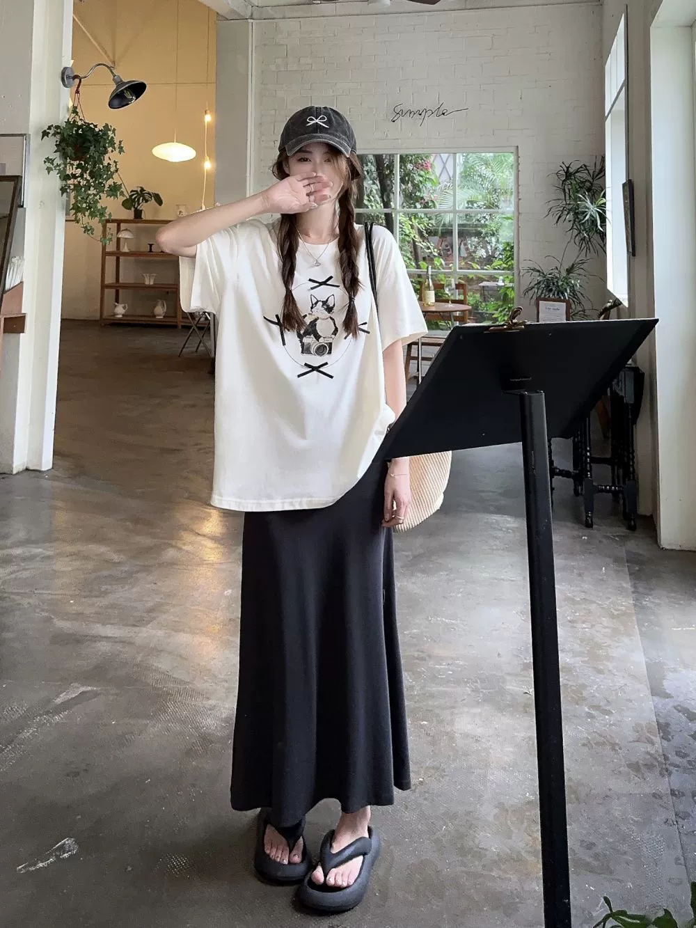Cute cat print women's summer fishtail skirt with bow