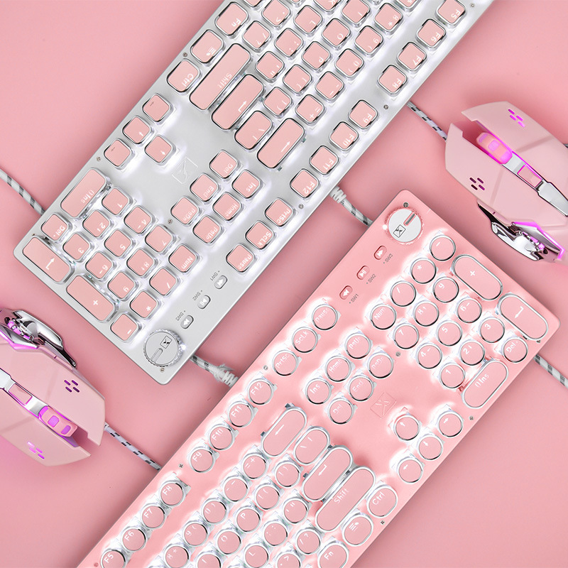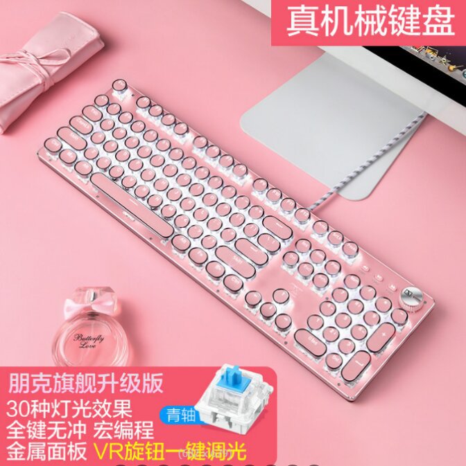 | nameOriginal | Cute Cherry Pink Girl Heart Mechanical Keyboard Mouse Set Game Green Axis Punk Retro Round Key Internet Celebrity |