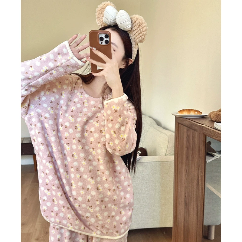 | nameOriginal | Cute Cloud Velvet Pajamas for Women Autumn and Winter 2024 New Coral Velvet Thickened Thin Velvet Pullover Home Clothes |