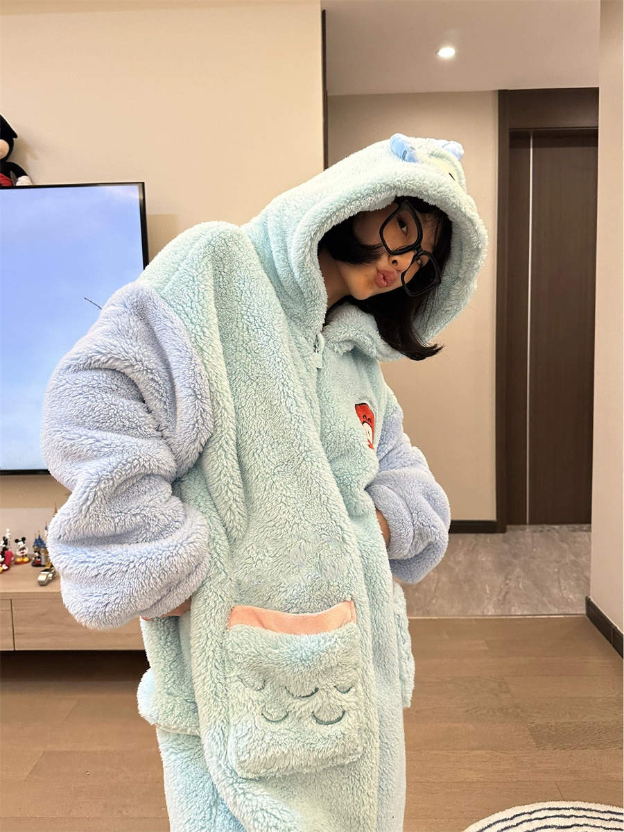 Cute clownfish hooded coral velvet pajamas winter women’s plus velvet thickened home clothes pajamas little ones jumpsuit
