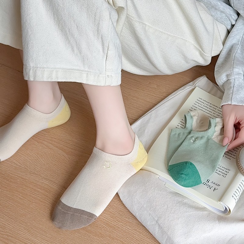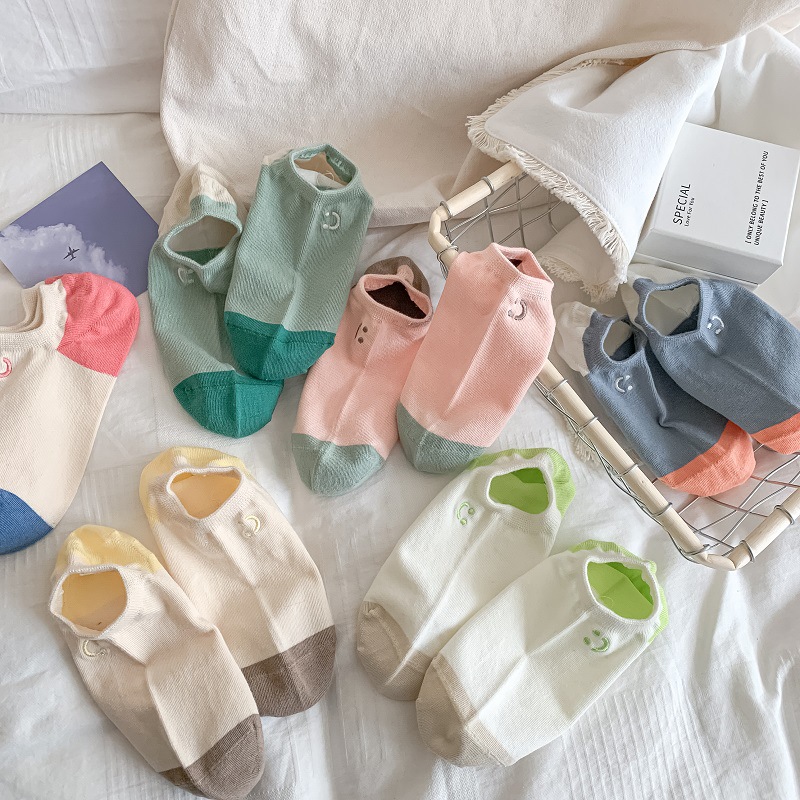 | nameOriginal | Cute Contrast Socks Women's Spring and Summer Smiley Embroidered Boat Socks Thin Non-slip Heel-free Invisible Shallow Socks |