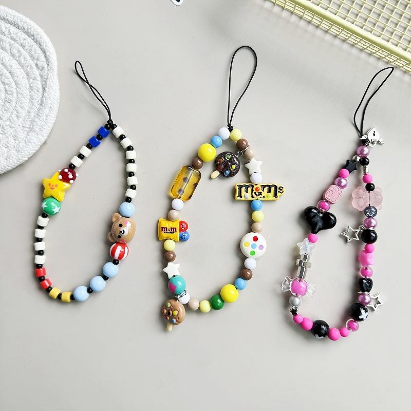 Cute cookie bear five-pointed star love pendant lanyard mobile phone chain color ccd chain anti-lost pendant chain