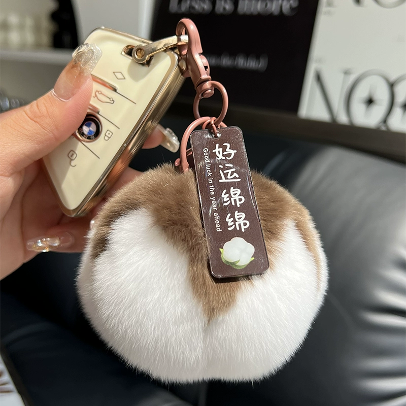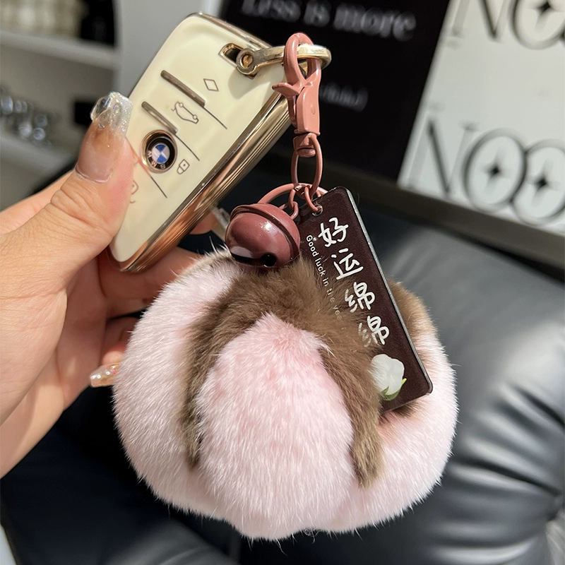 | nameOriginal | Cute cotton car keychain gift with real rex rabbit fur |