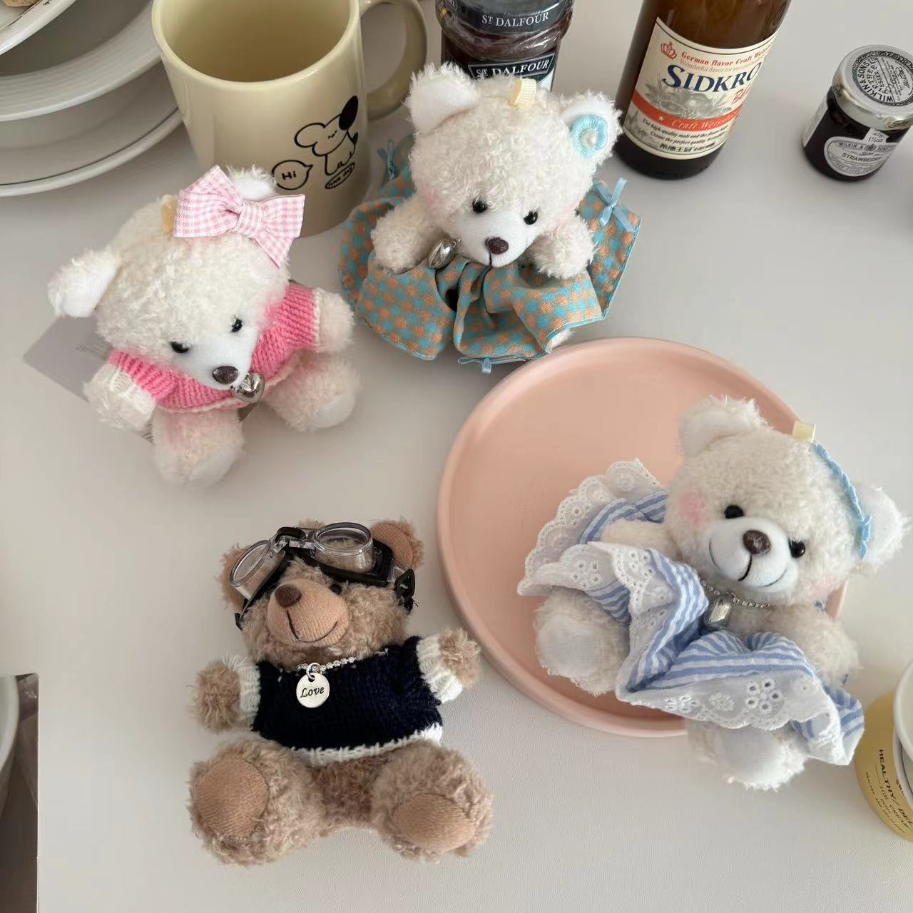 Cute cute bear pendant accessories plush toy cartoon bow girl accessories keychain diy original