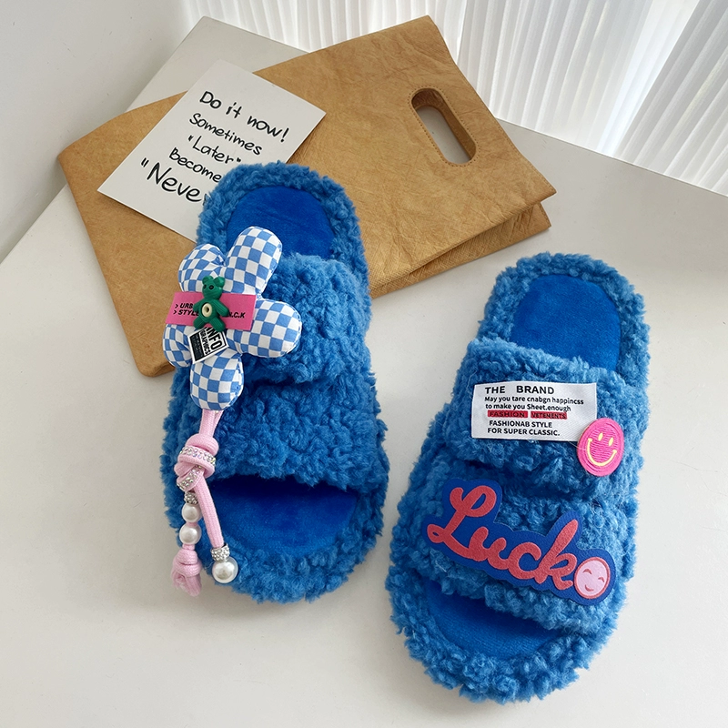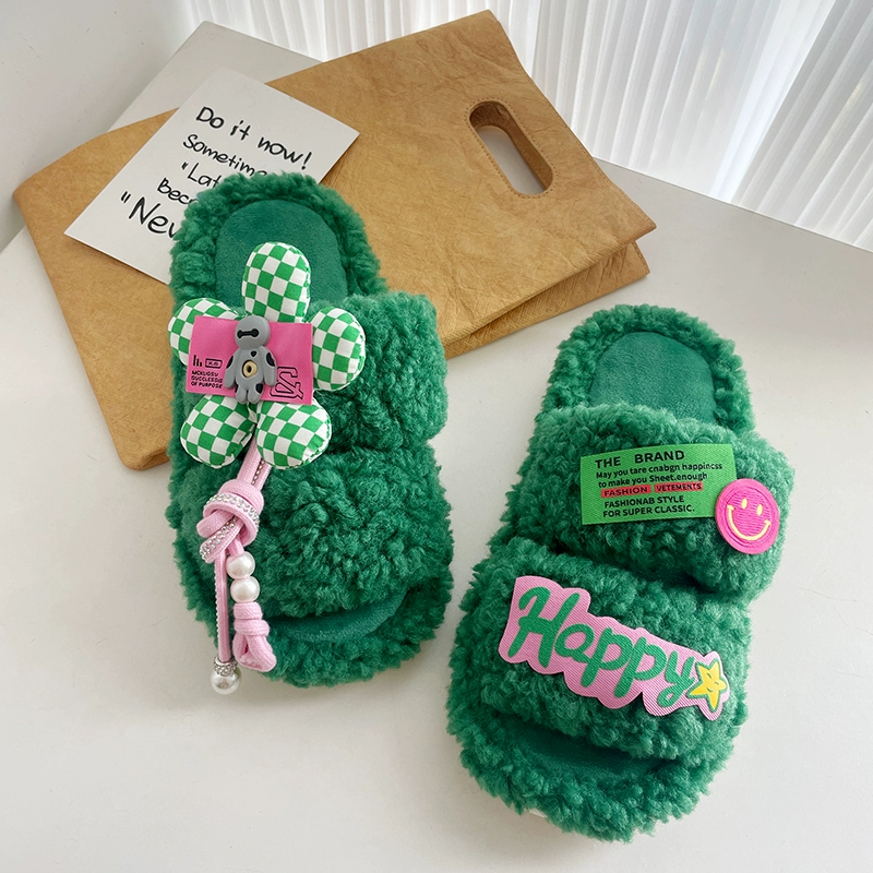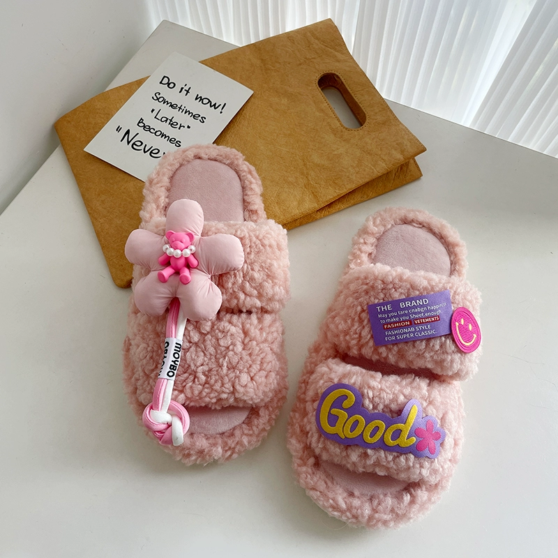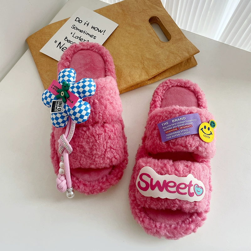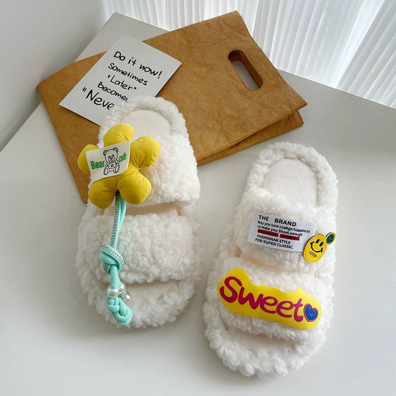 | nameOriginal | Cute dopamine letter flower double-strap lamb plush slippers non-slip home and outdoor cotton slippers for women ins style |