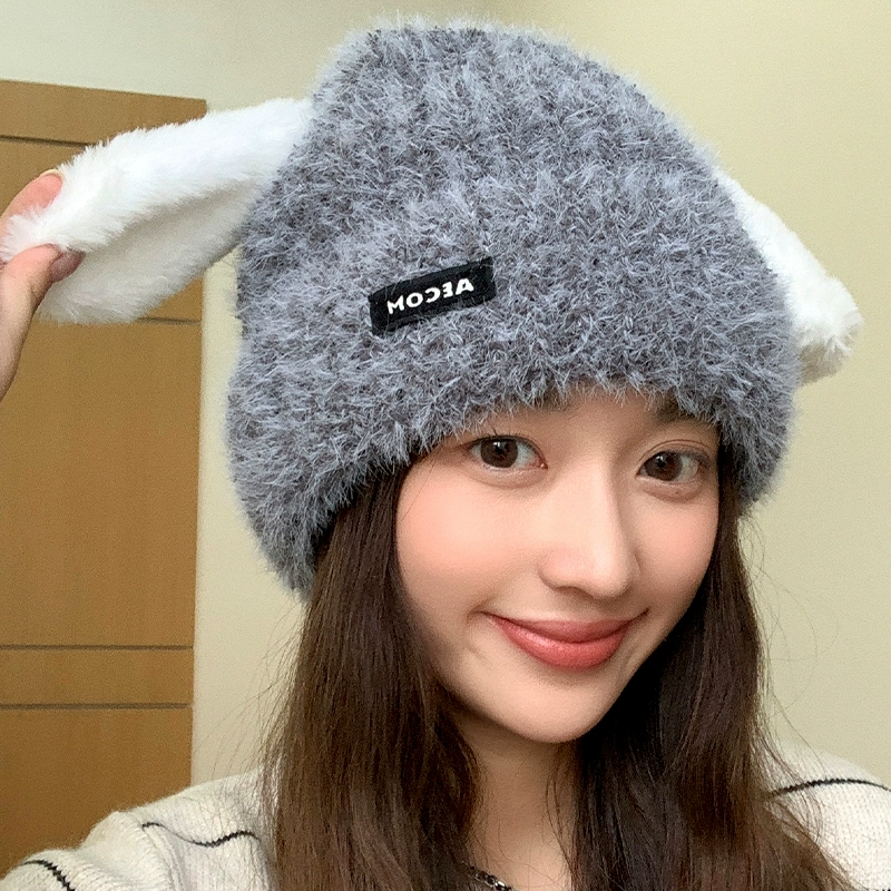 | nameOriginal | Cute ears knitted women's autumn and winter plush woolen hat |