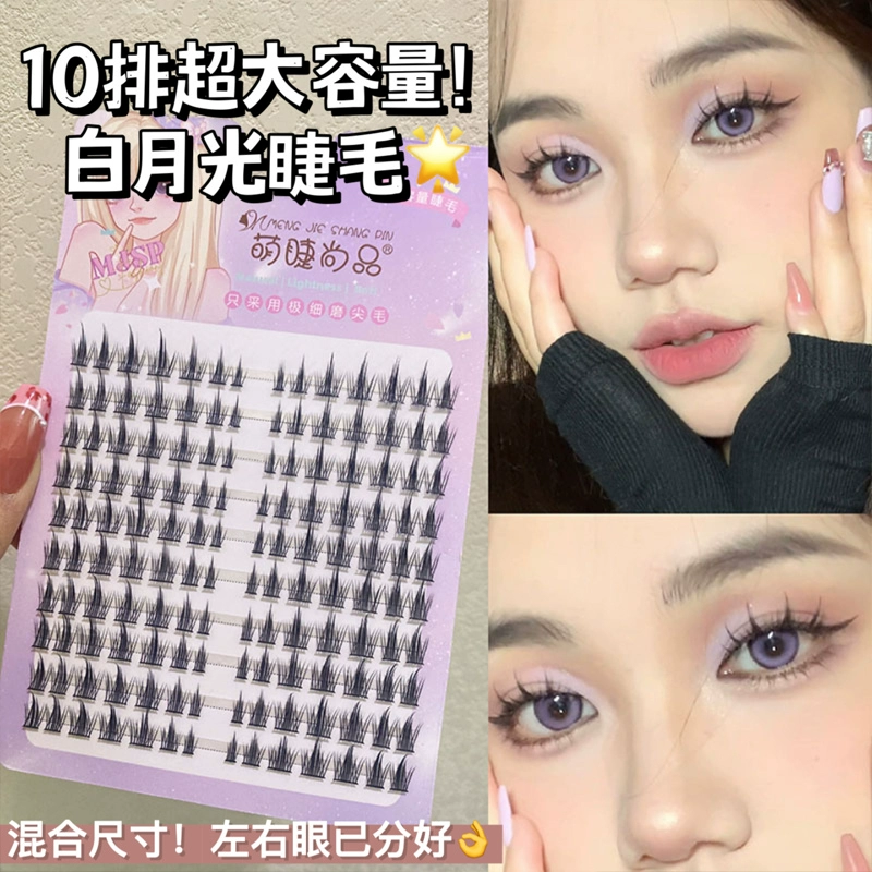 Cute eyelashes 10 rows of white moonlight false eyelashes large capacity eyelashes trilogy devil female natural artificial eyelashes