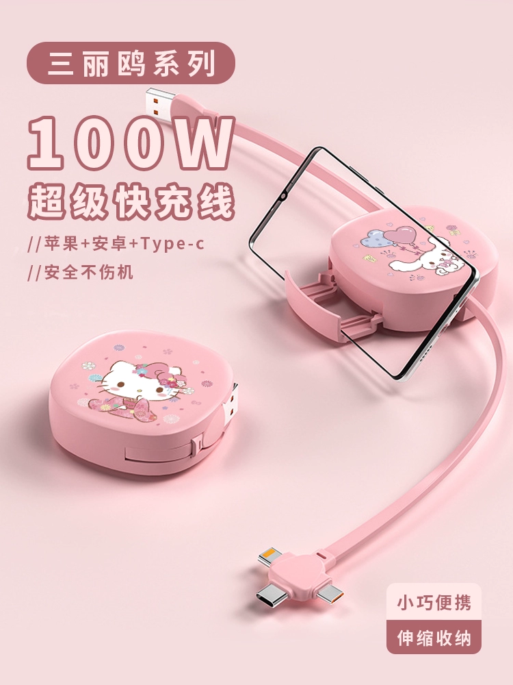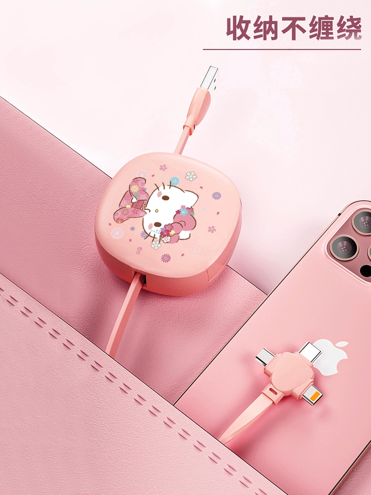 | nameOriginal | Cute flash charging Apple Huawei retractable two-in-one charging cable iphone three-head storage suitable for vivo Xiaomi oppo Android glory Samsung type-c universal 5A super fast charging data cable |