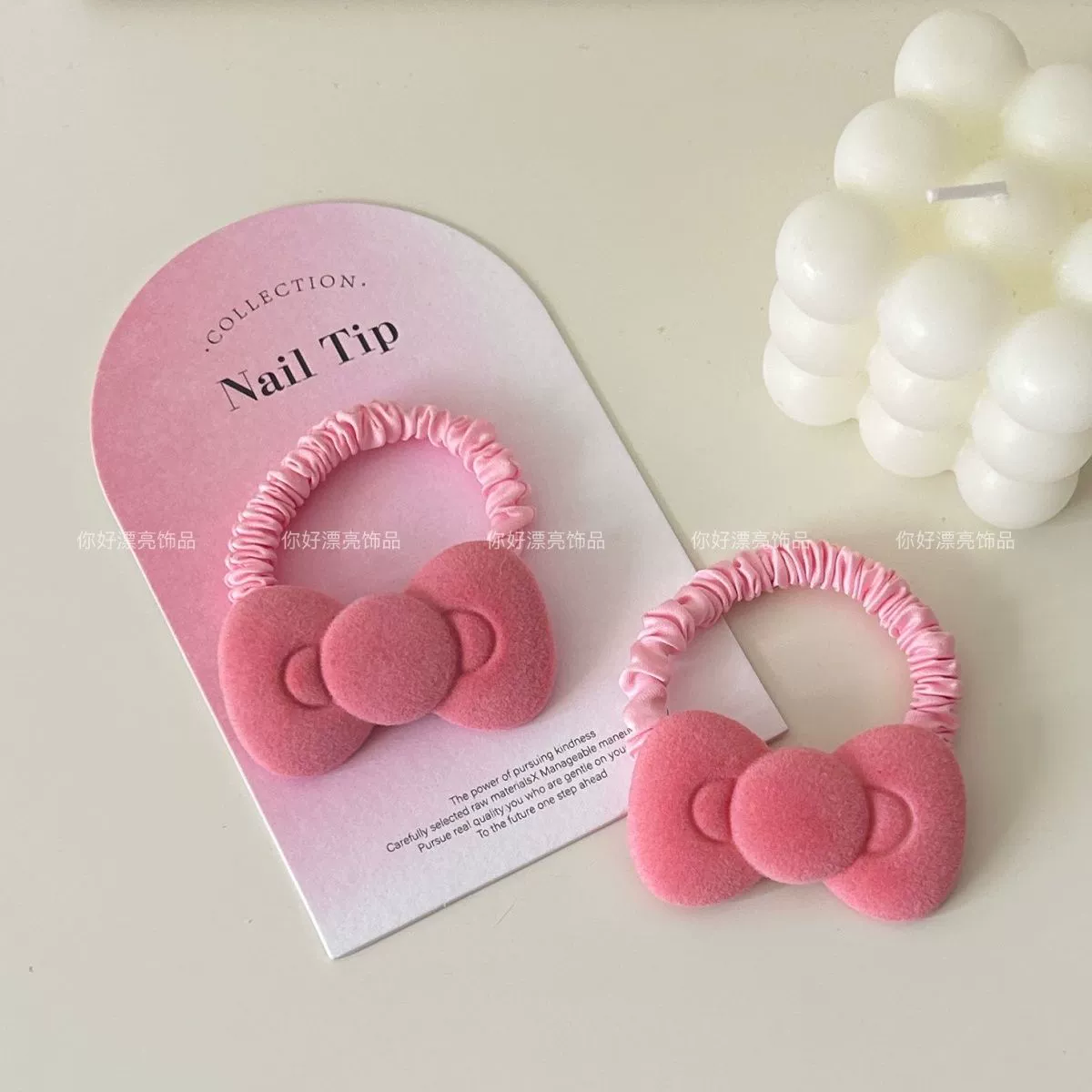 | nameOriginal | Cute flocked round bow large intestine hair ring ins girl soft-hearted sprouting rope sweet ponytail hair accessories rubber band for women |