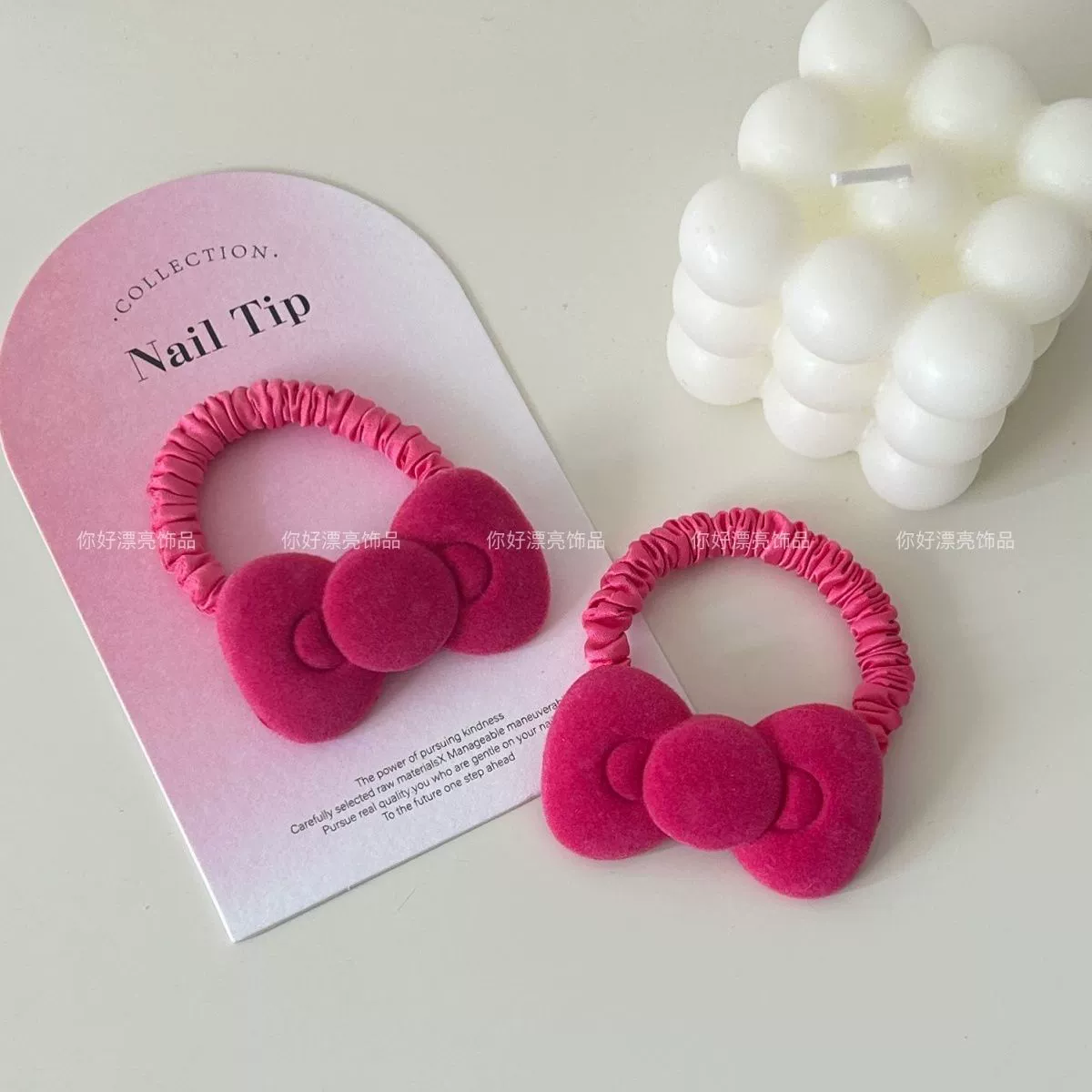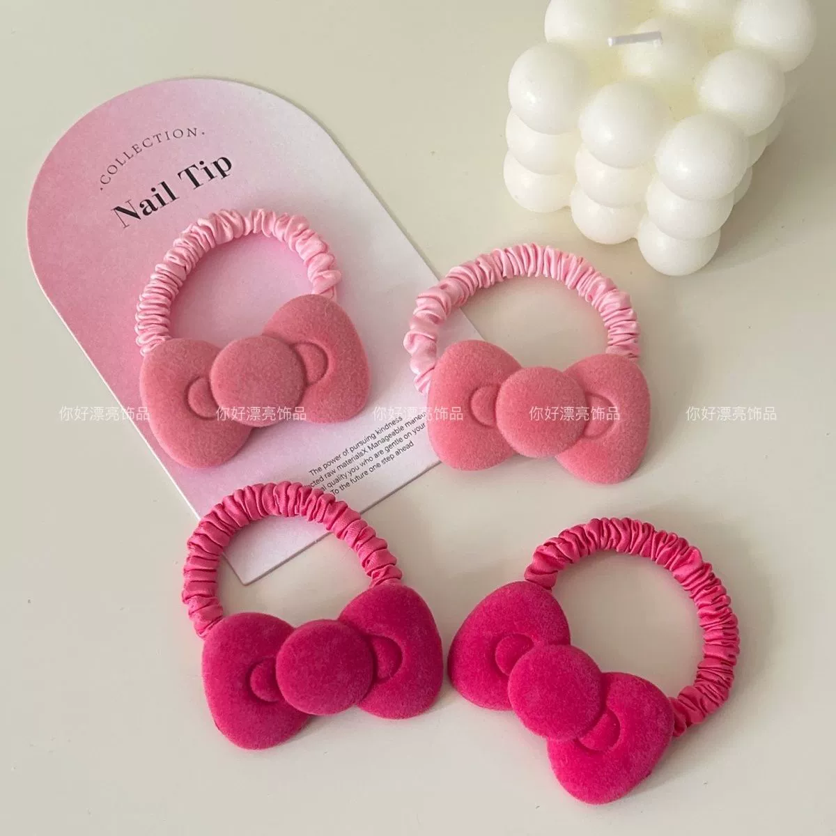 | nameOriginal | Cute flocked round bow large intestine hair ring ins girl soft-hearted sprouting rope sweet ponytail hair accessories rubber band for women |