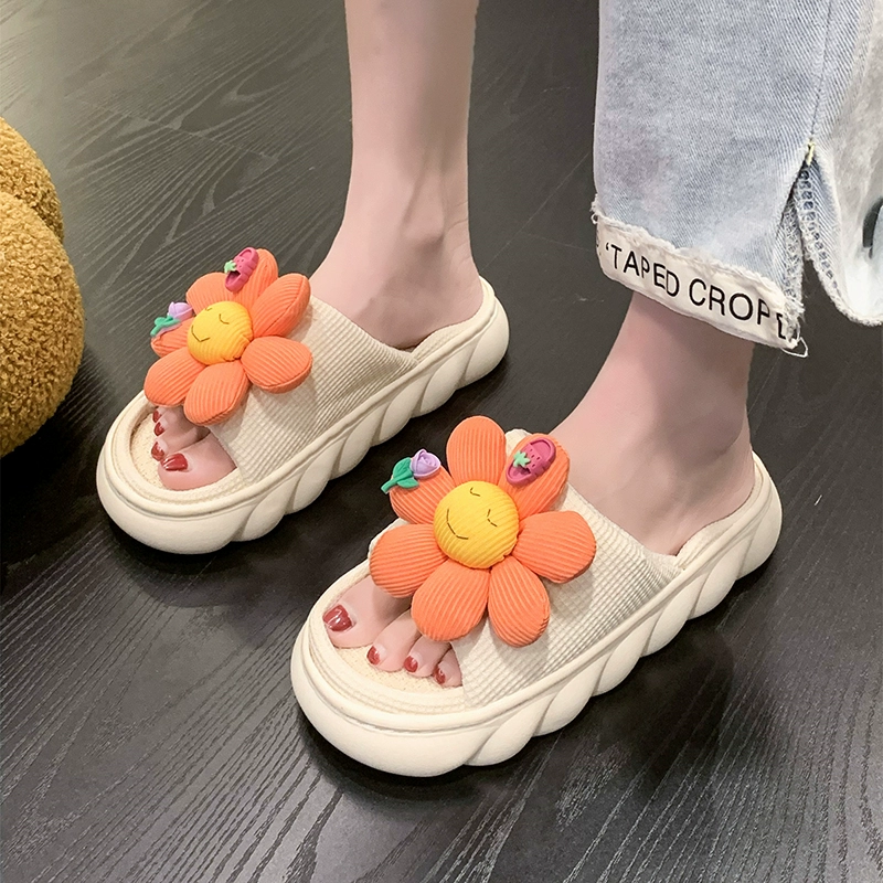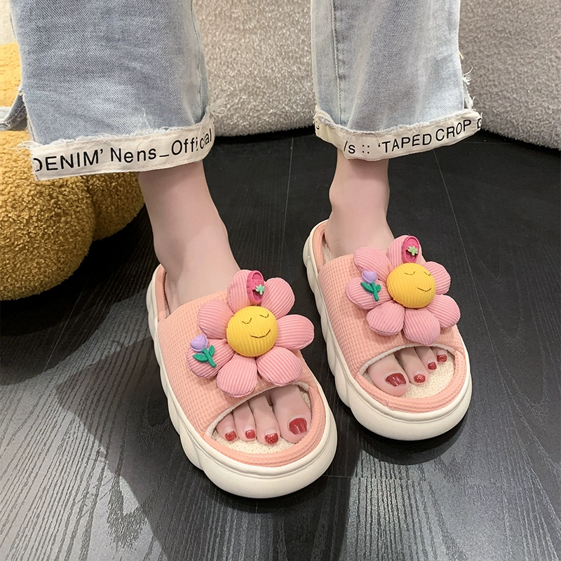 Cute flowers women’s summer thick-soled indoor linen slippers