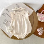 Cute flying sleeve pure cotton embroidery doll collar triangle Ha Yi