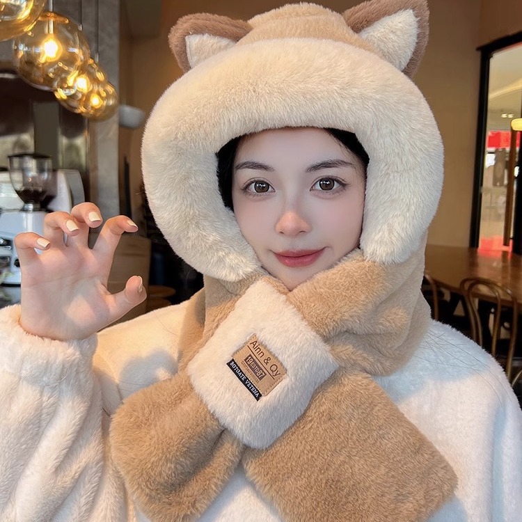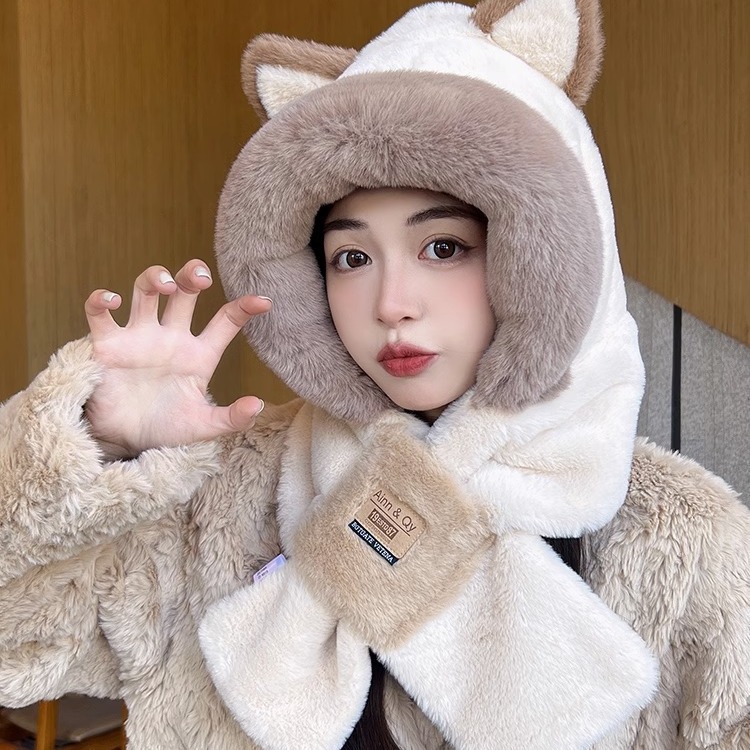| nameOriginal | Cute fox ears plush hat scarf integrated hat female autumn and winter riding cold-proof windproof ear protection warm hat tide |