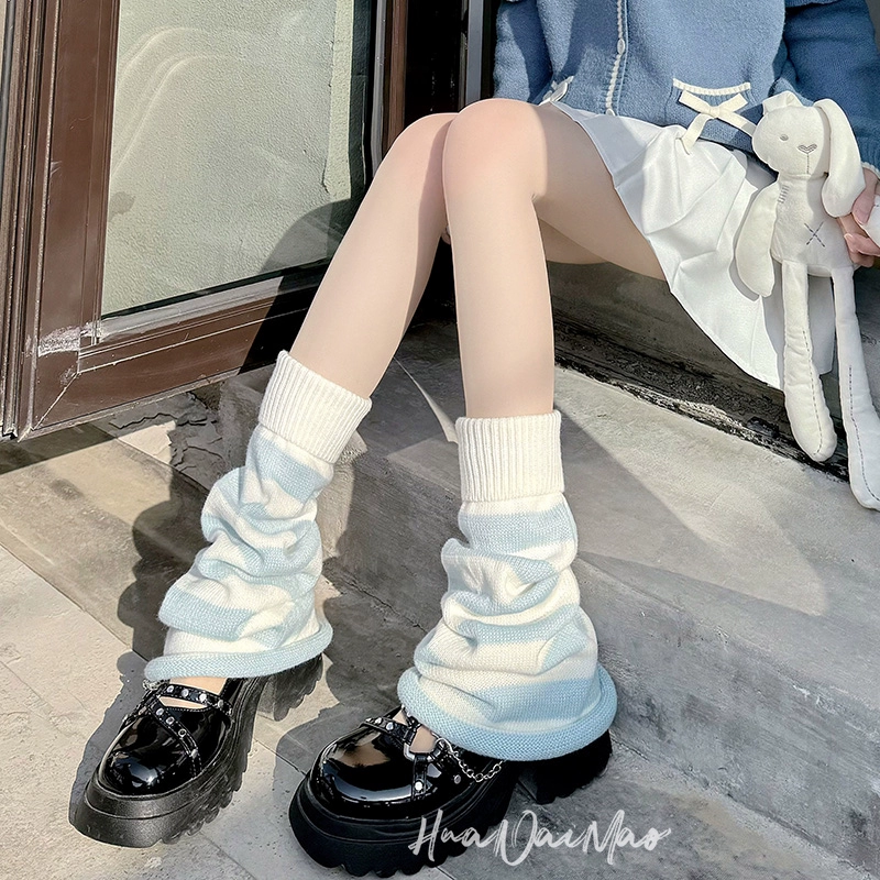| nameOriginal | Cute fur ball aqua white and blue striped leg covers subculture socks women's knitted socks covers jk horn wide leg pile socks |