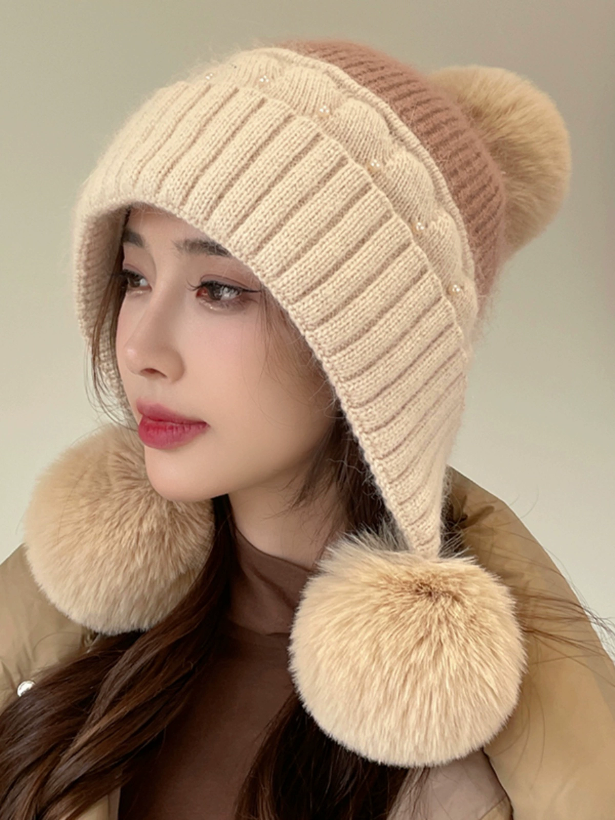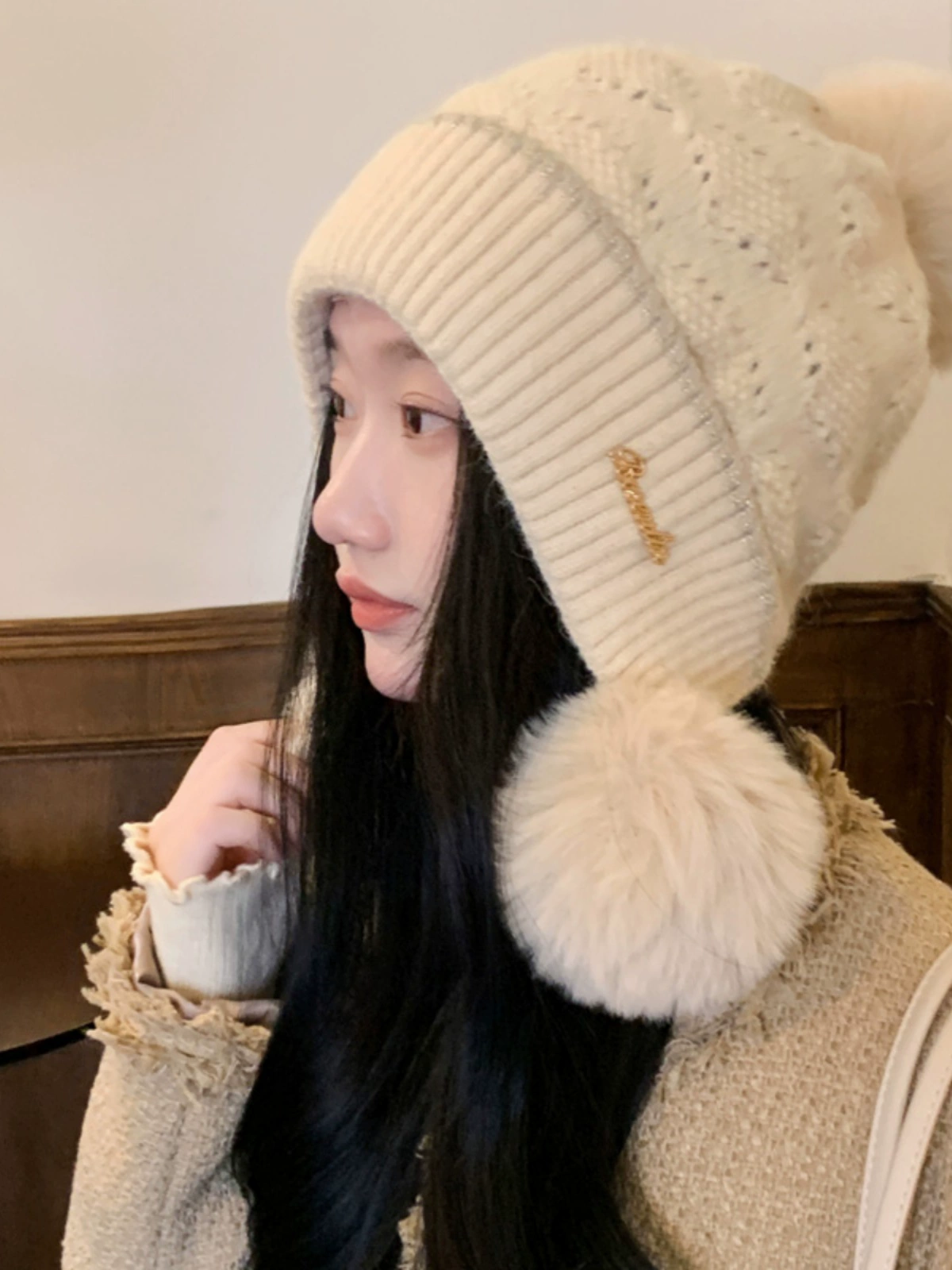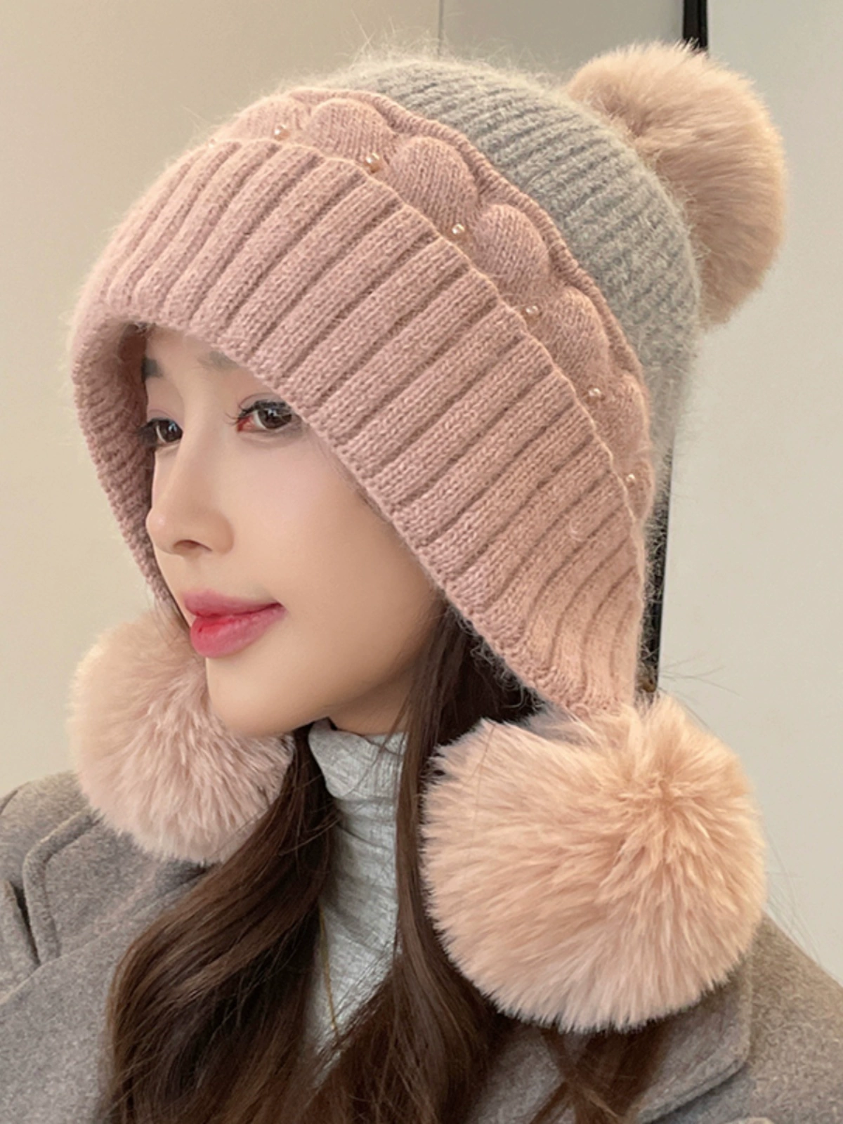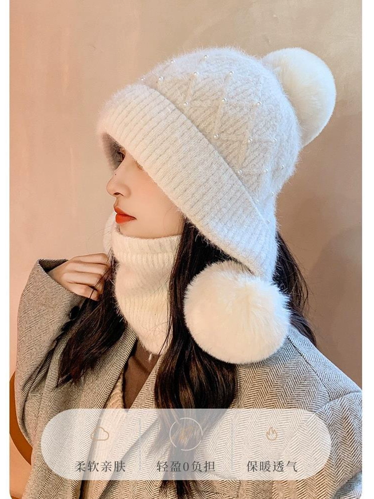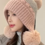 | nameOriginal | Cute fur ball hat for women in winter plus velvet for warmth and ear protection for cycling to prevent cold and windproof rabbit fur student pullover woolen hat |