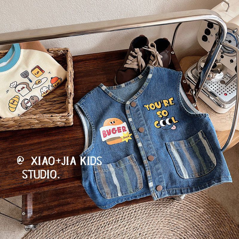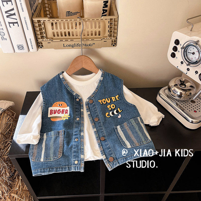 | nameOriginal | Cute ~ hamburger printed Denim vest children's all-match boys and girls handsome sleeveless spring and autumn vest fashion |