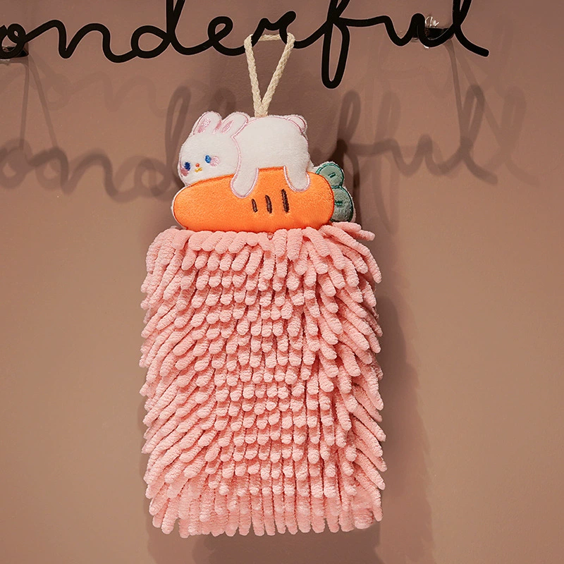 Cute hand towel hanging absorbent chenille small square towel household kitchen rag quick-drying hand towel children's towel