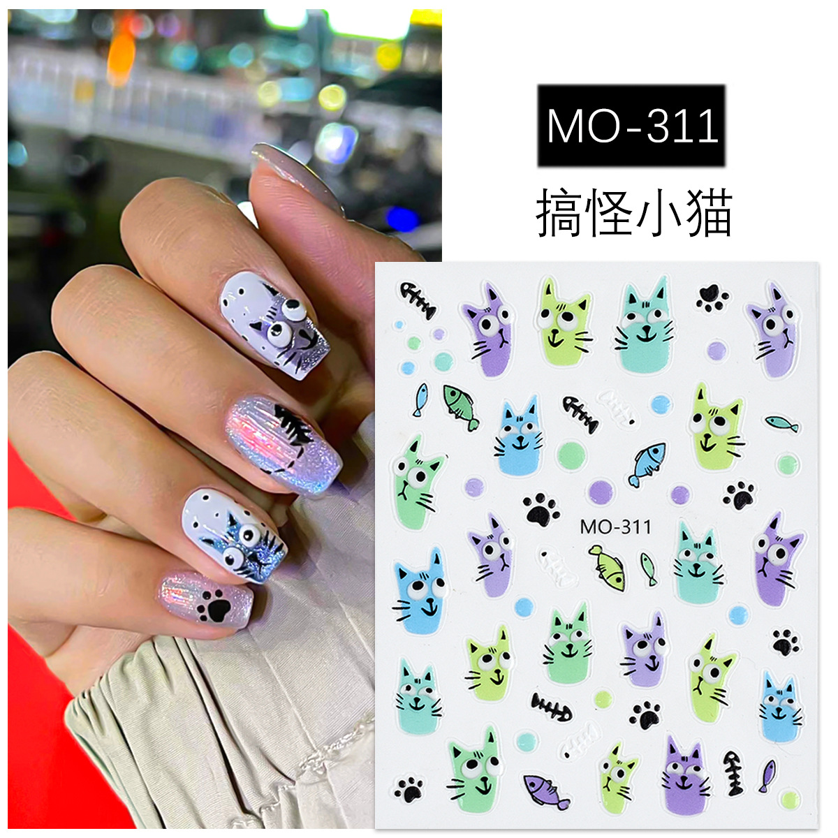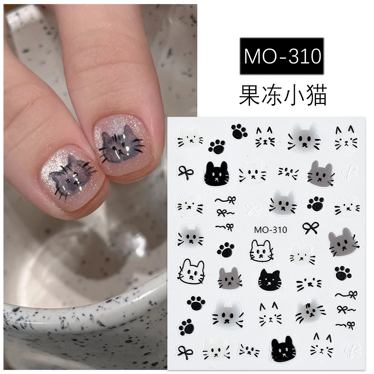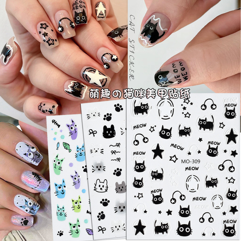 | nameOriginal | Cute Headset Cat Nail Art Sticker Embossed Cartoon Hand-painted Little Black Cat Funny Wearing Nail Sticker Internet Popular Explosions |