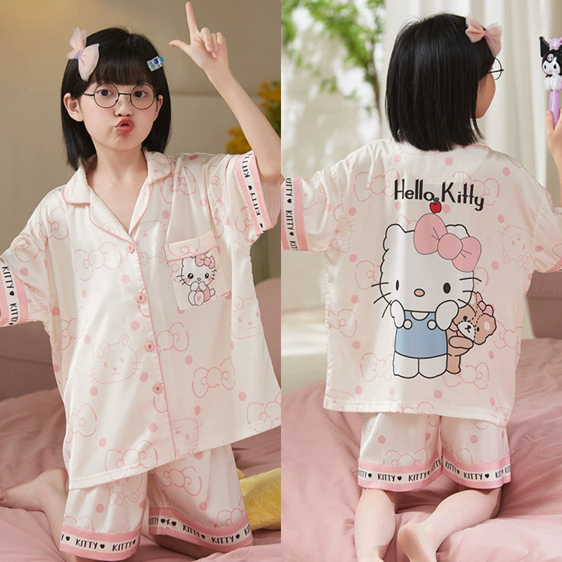 | nameOriginal | Cute ice silk summer short-sleeved parent-child girls pajamas |